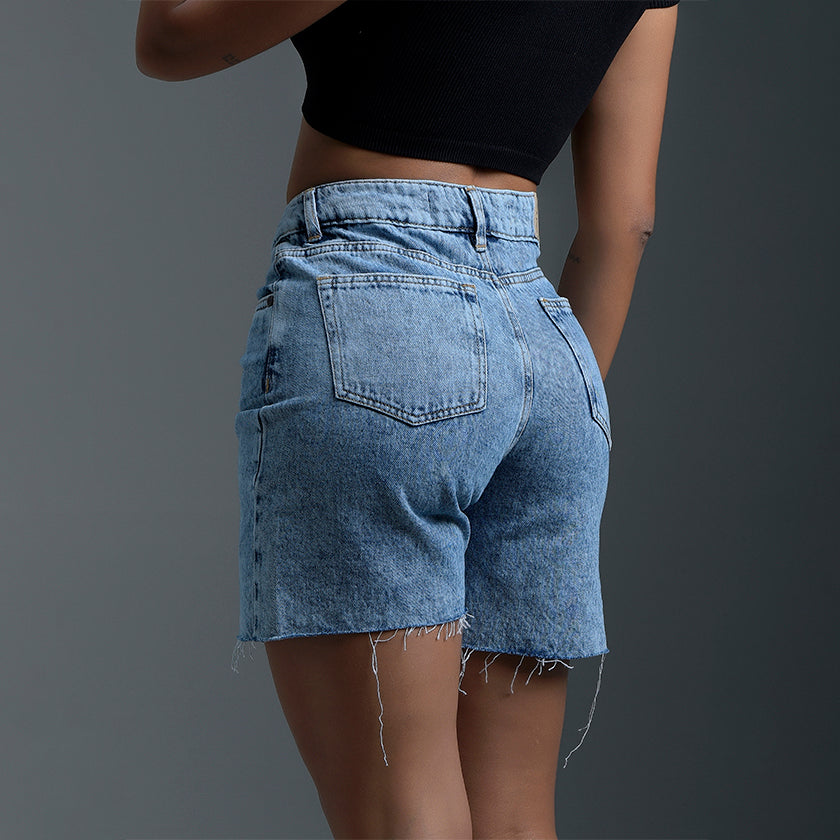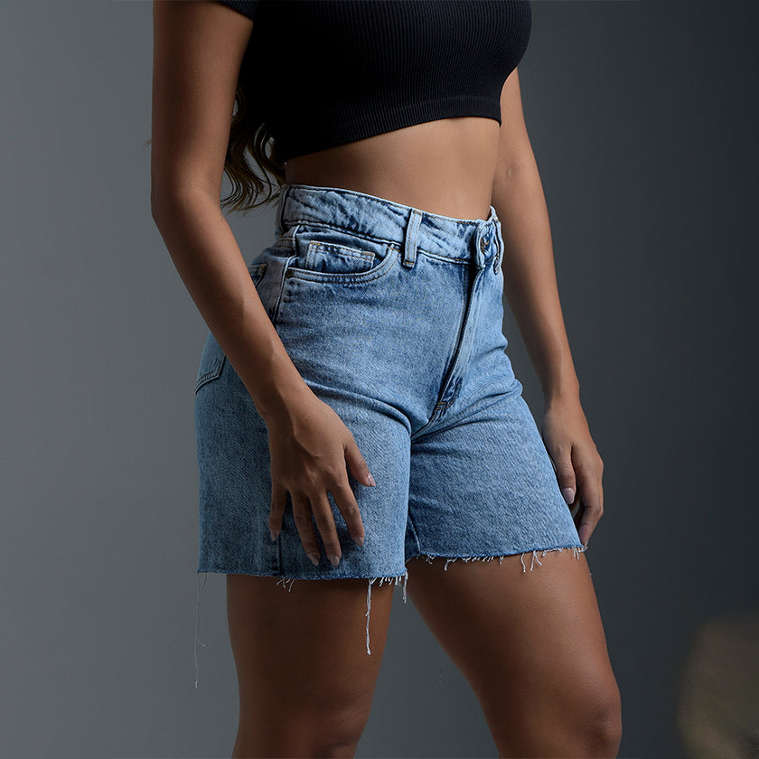 Short denim para mujer. Cuenta con marquilla de la marca en la parte posterior. Tiro alto y silueta cómoda ajustada al cuerpo para crear un outfit más fresco.