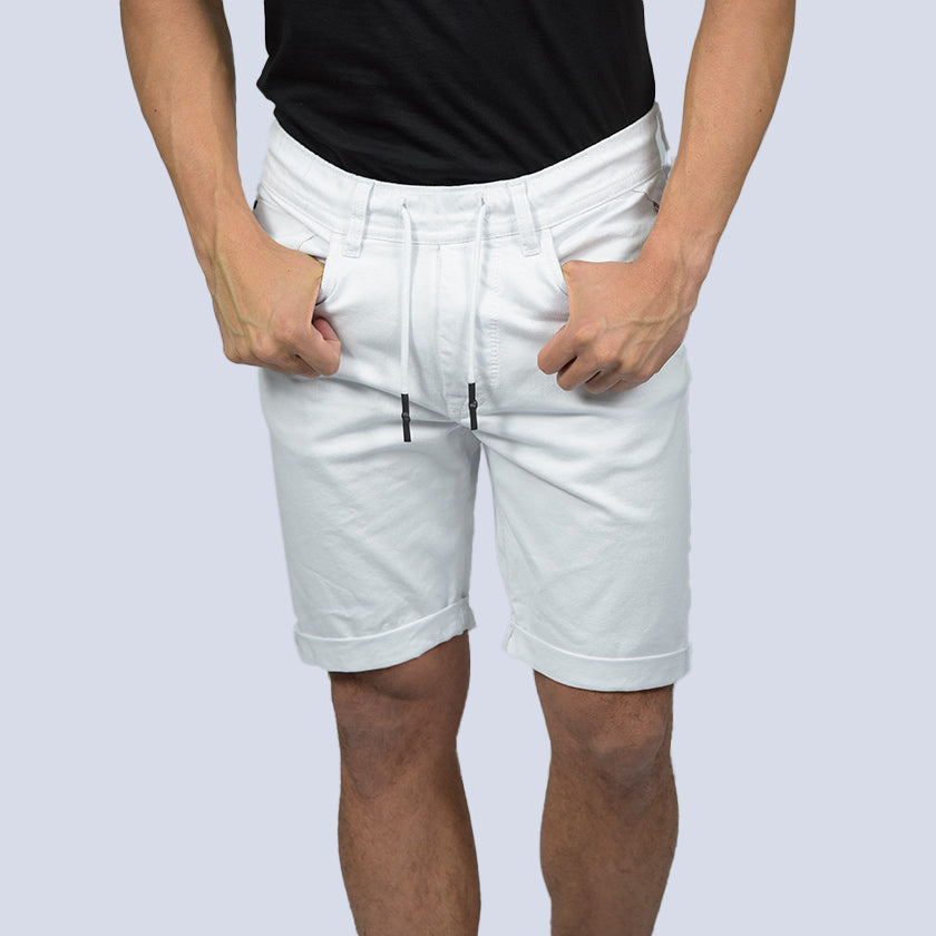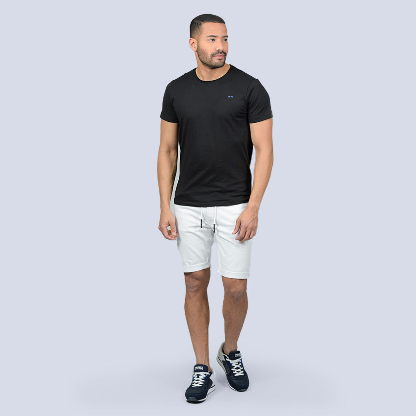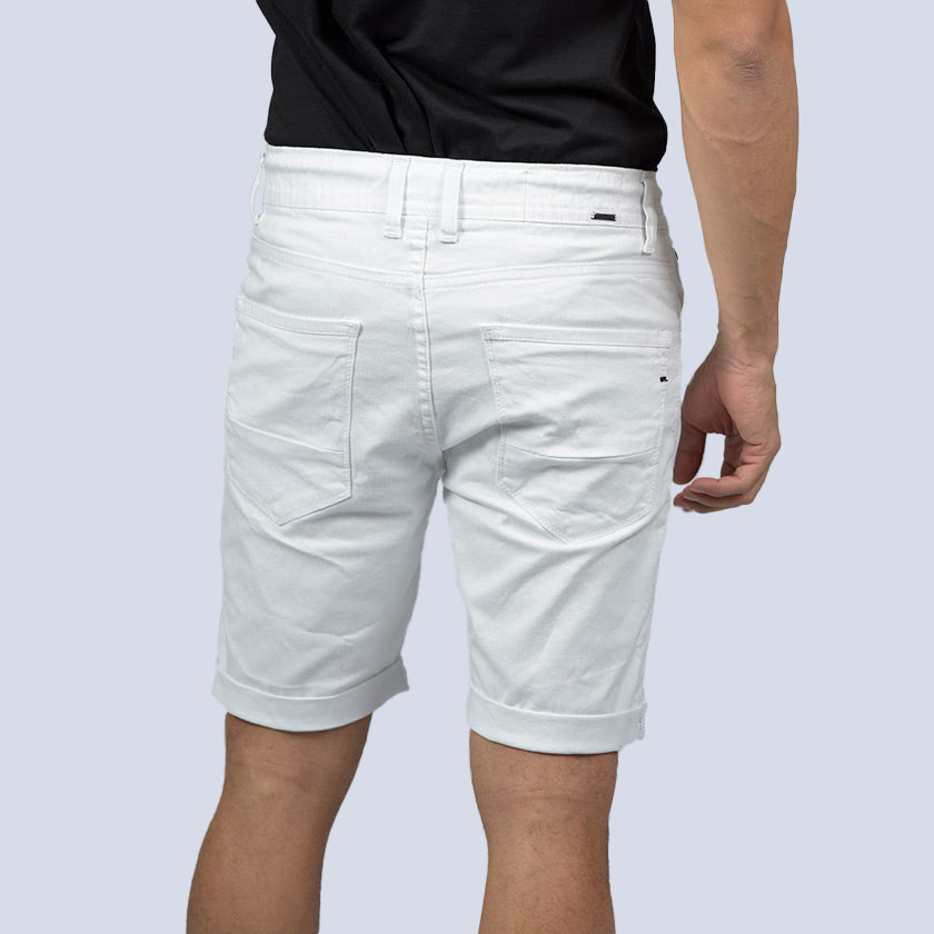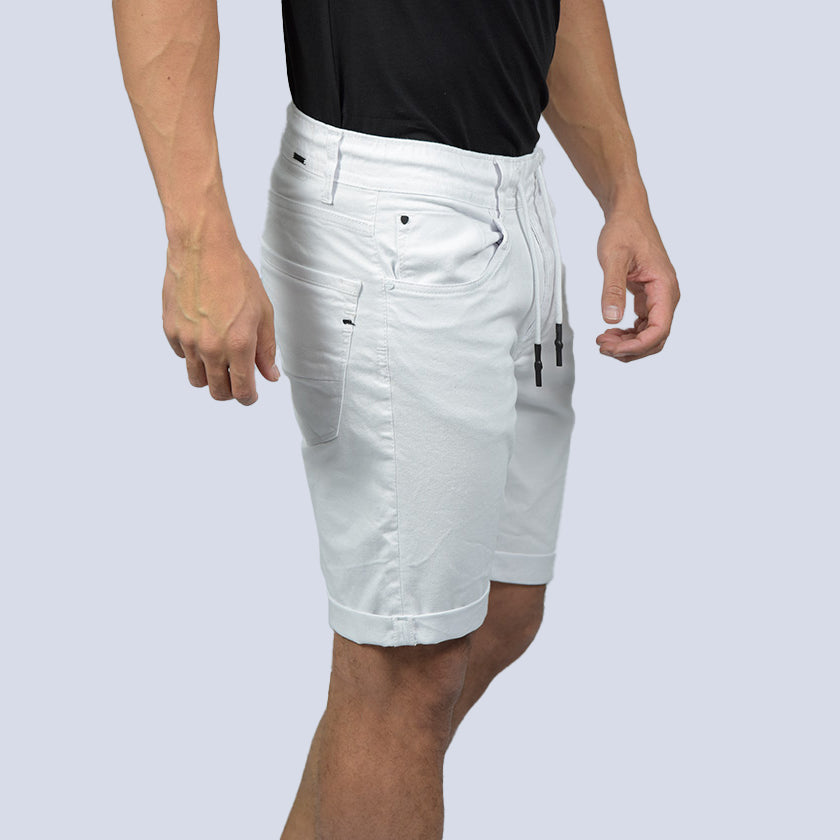 Bermuda para hombre presenta placa metálica ROOTT+CO y bolsillos traseros, cómoda ligeramente arriba de la rodilla.