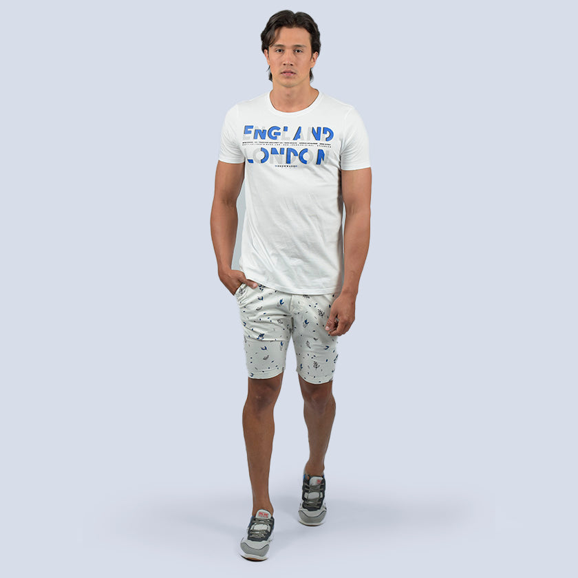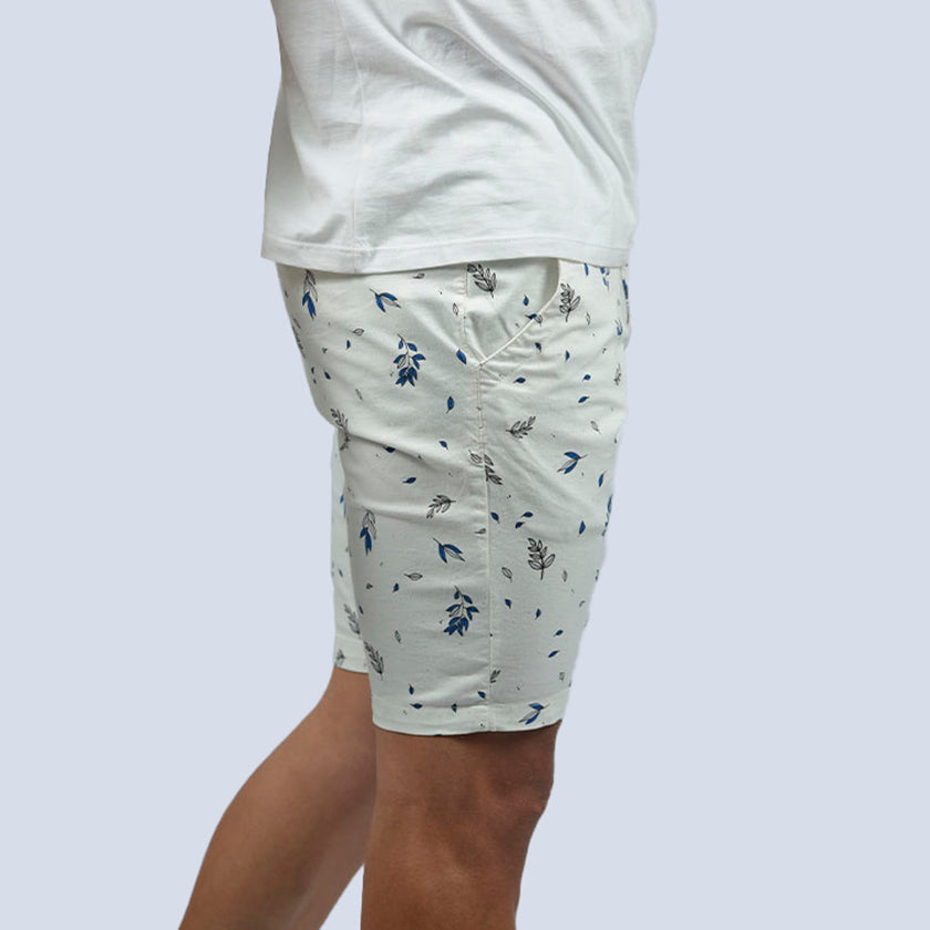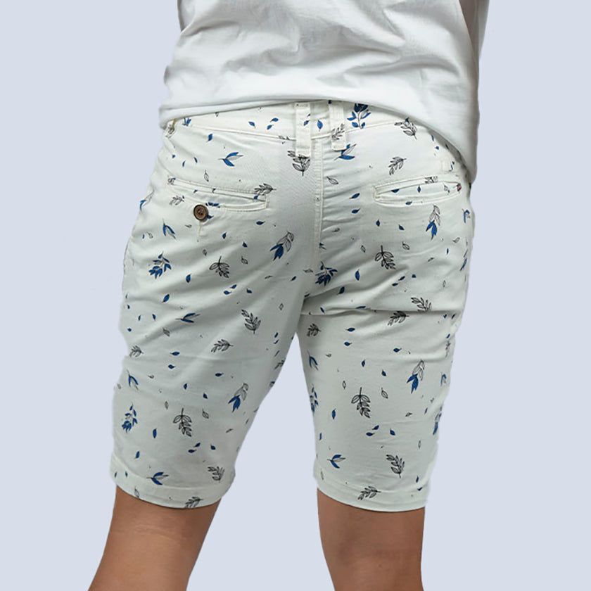 Bermuda para hombre presenta marquilla ROOTT+CO en el bolsillo trasero junto con botón, cómoda ligeramente arriba de la rodilla.