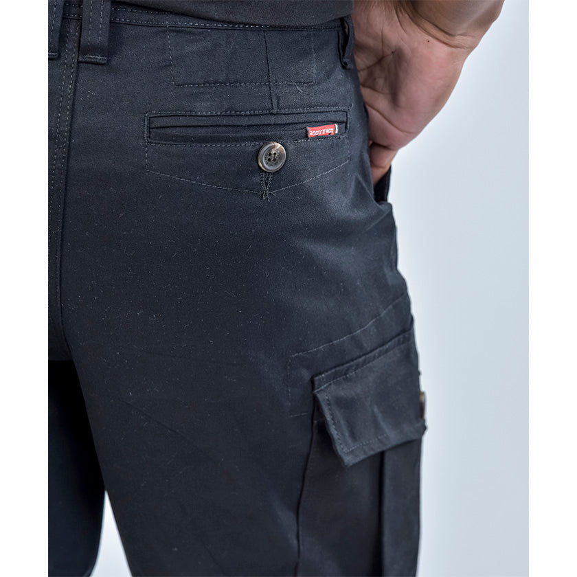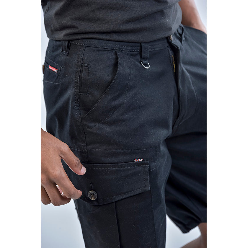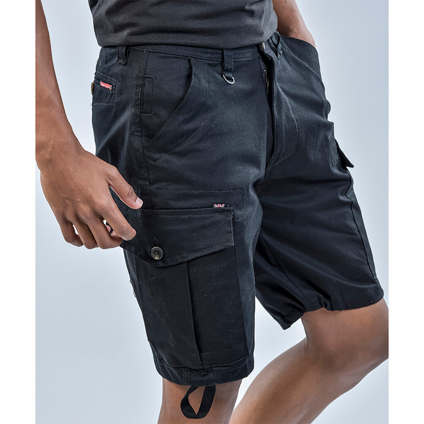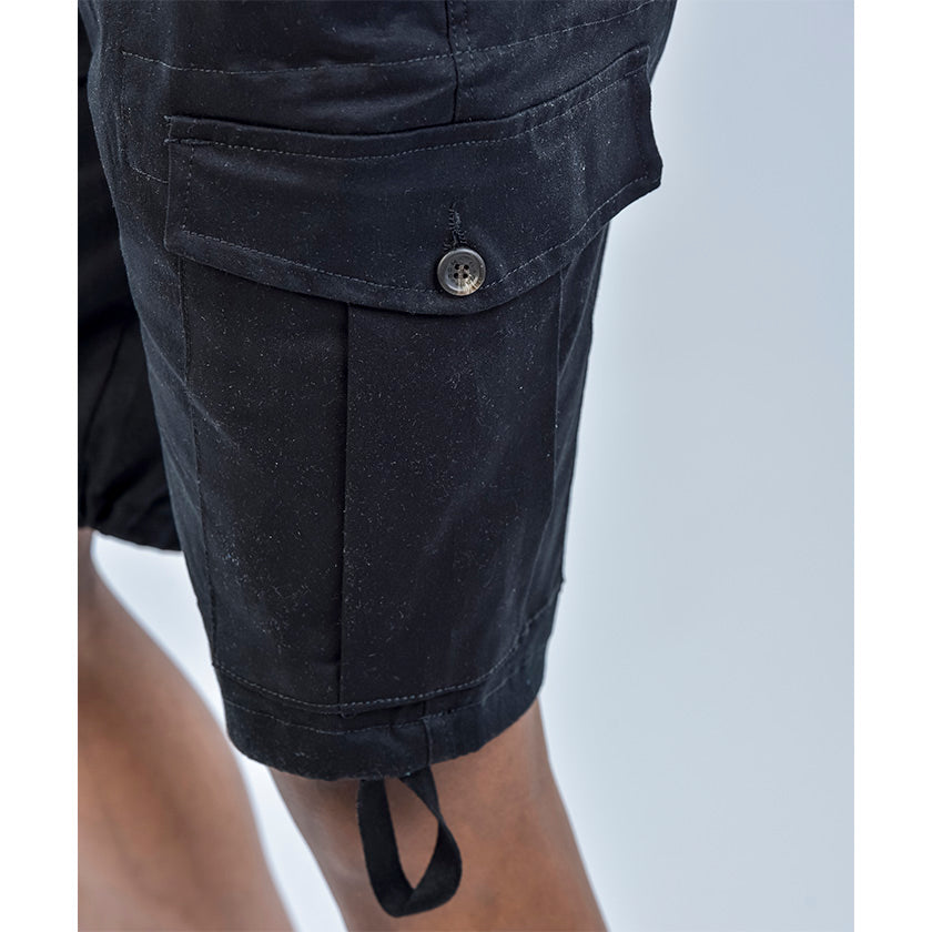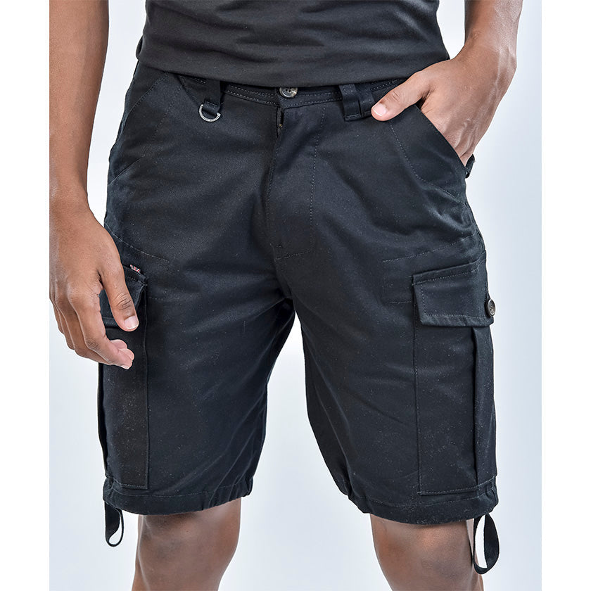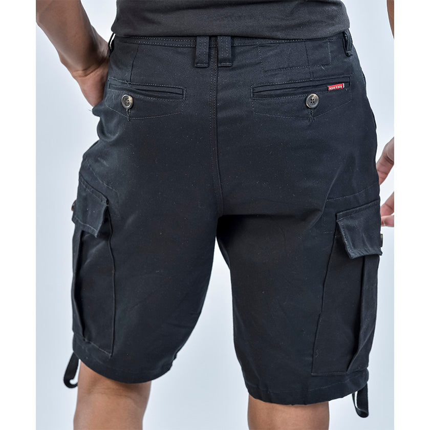 Bermuda cargo para hombre presenta bolsillos en los muslos y marquilla ROOTT+CO en el bolsillo trasero, cómoda ligeramente arriba de la rodilla.