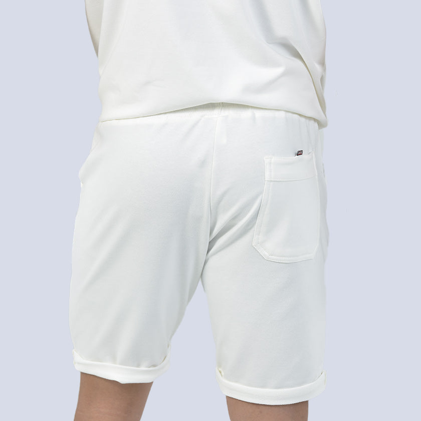 Esta bermuda en burda cómoda ligeramente arriba de la rodilla