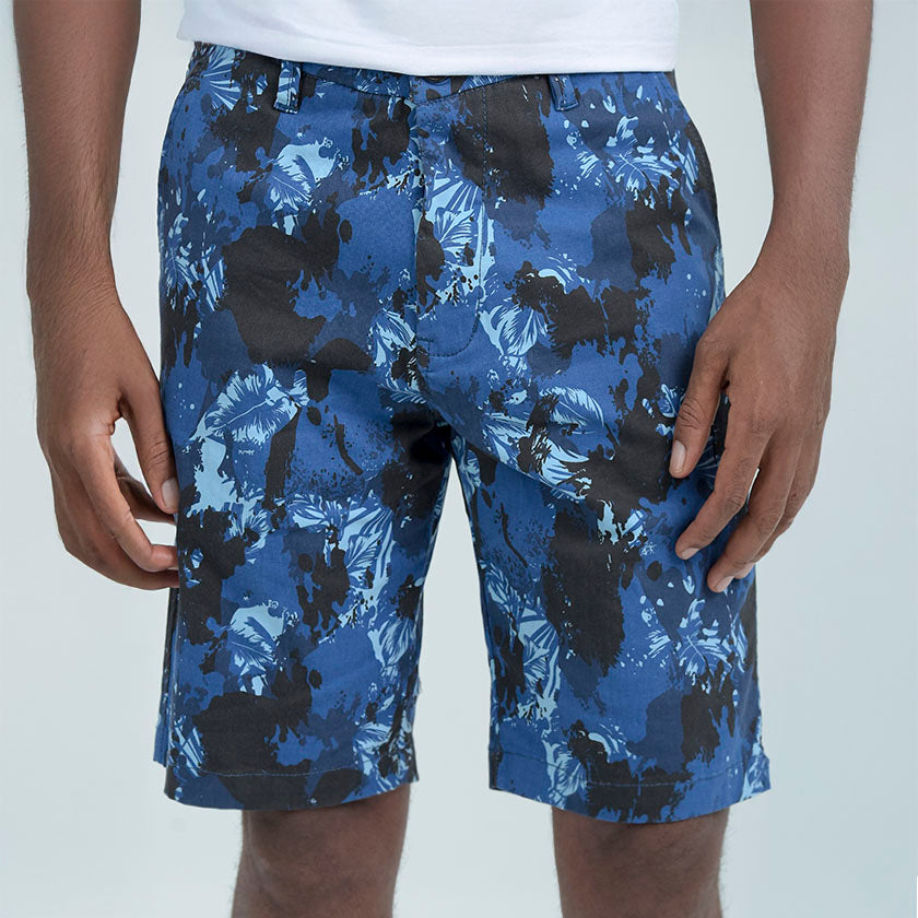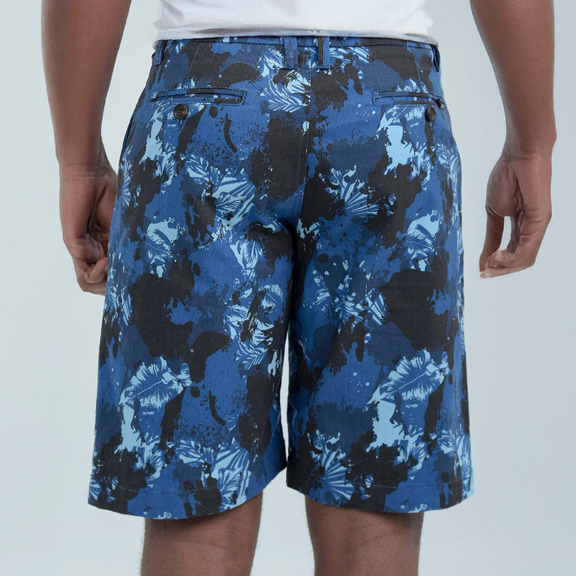 Bermuda para hombre presenta marquilla ROOTT+CO en el bolsillo trasero junto con botón, cómoda ligeramente arriba de la rodilla.