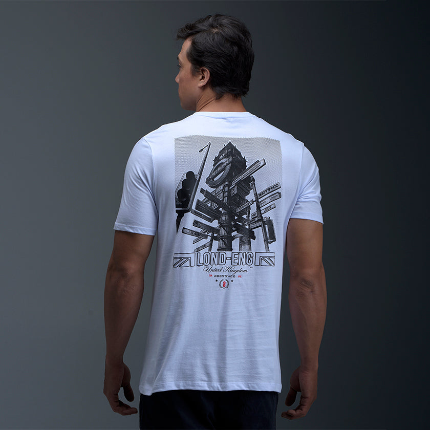 Camiseta para hombre presenta estampados ROOTT+CO, luce marquilla en la manga.