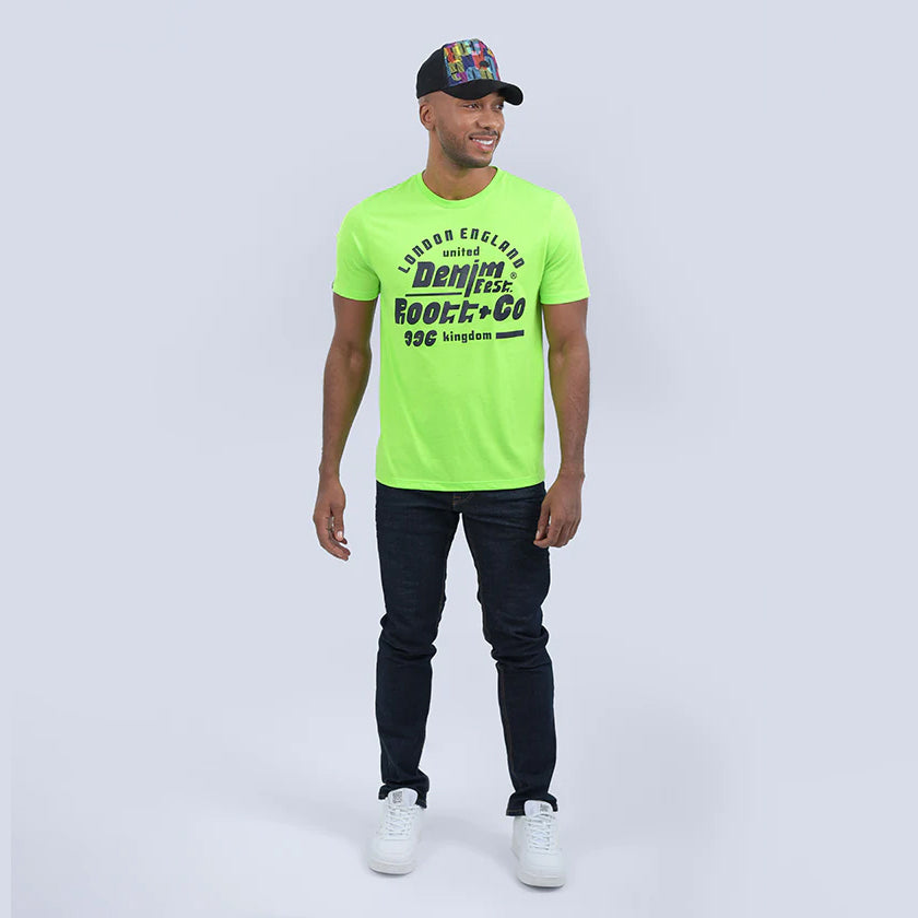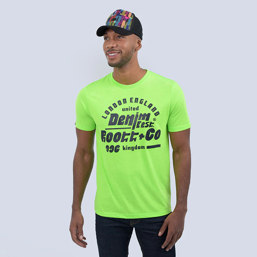Camiseta para hombre. Presenta gráfico en el pecho y marquillas de la marca ROOTT+CO.