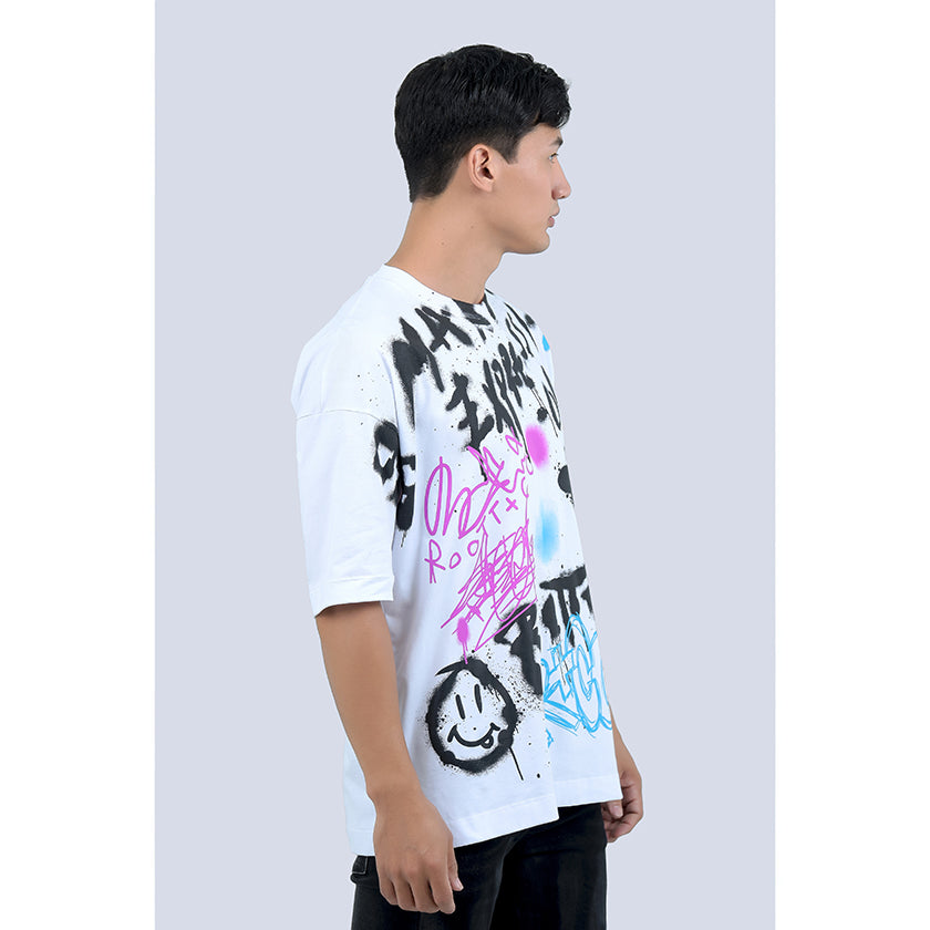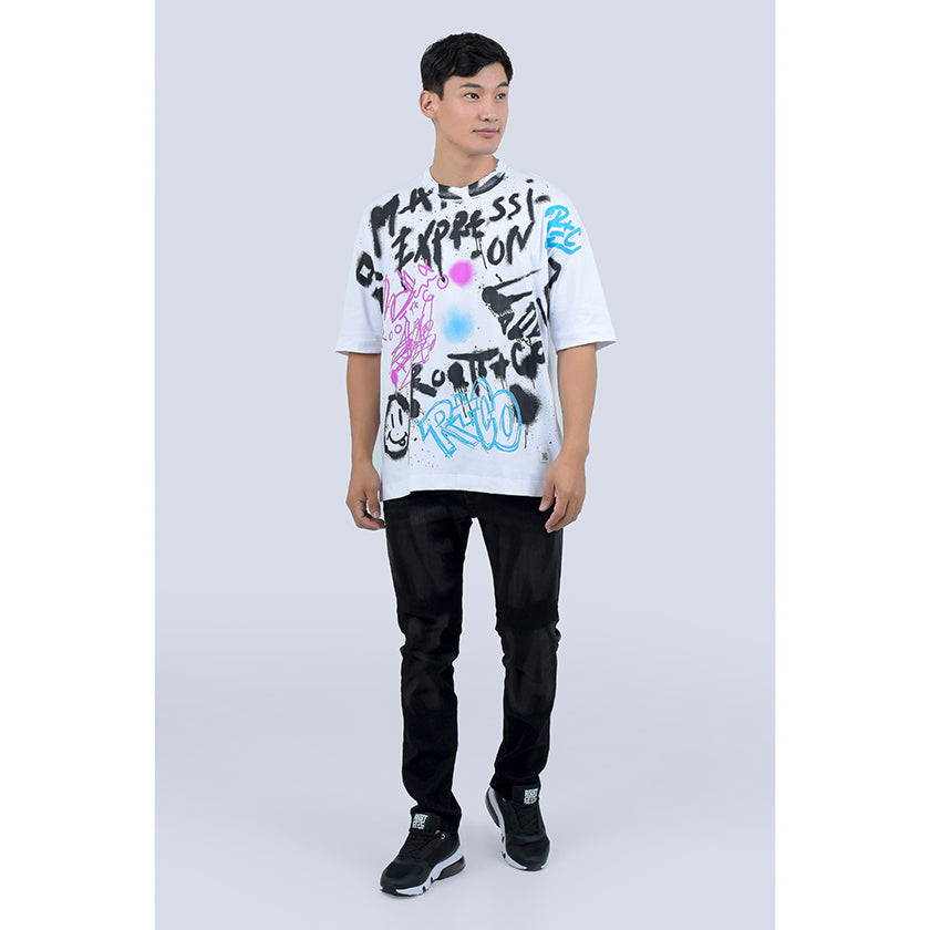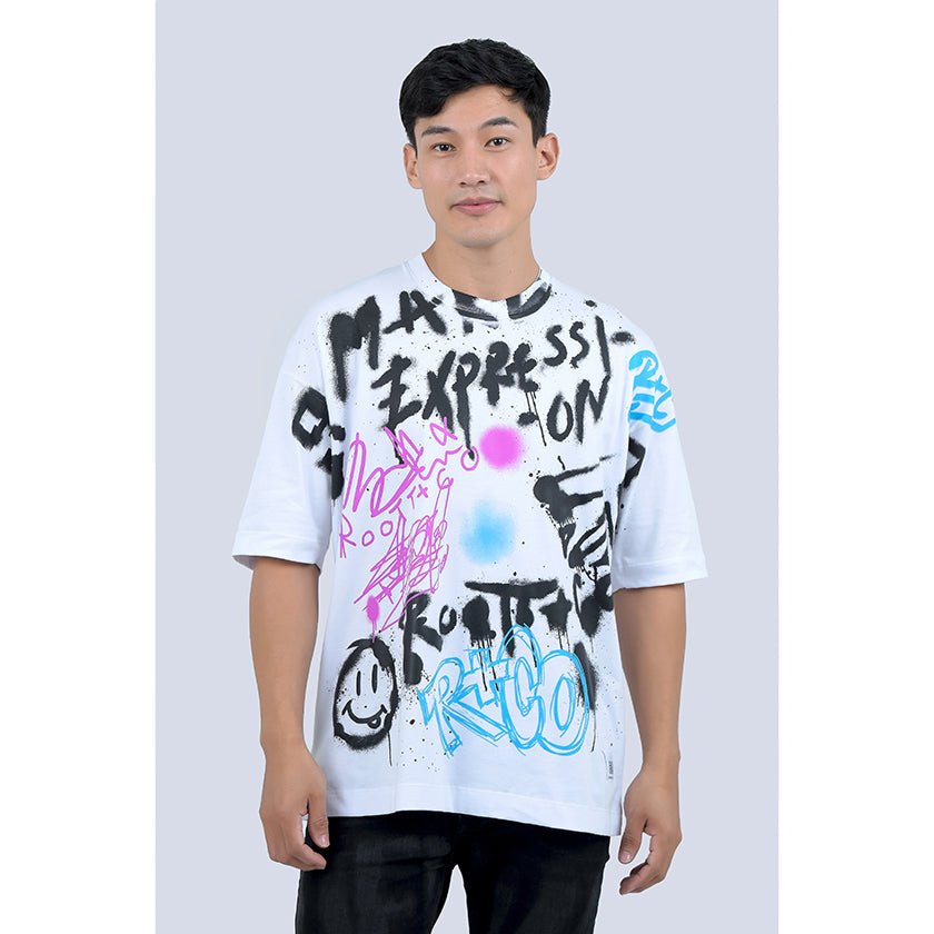 Camiseta Oversize presenta gráficos ROOTT+CO en la parte delantera y trasera. Luce marquilla código en el costado y banderilla de la marca