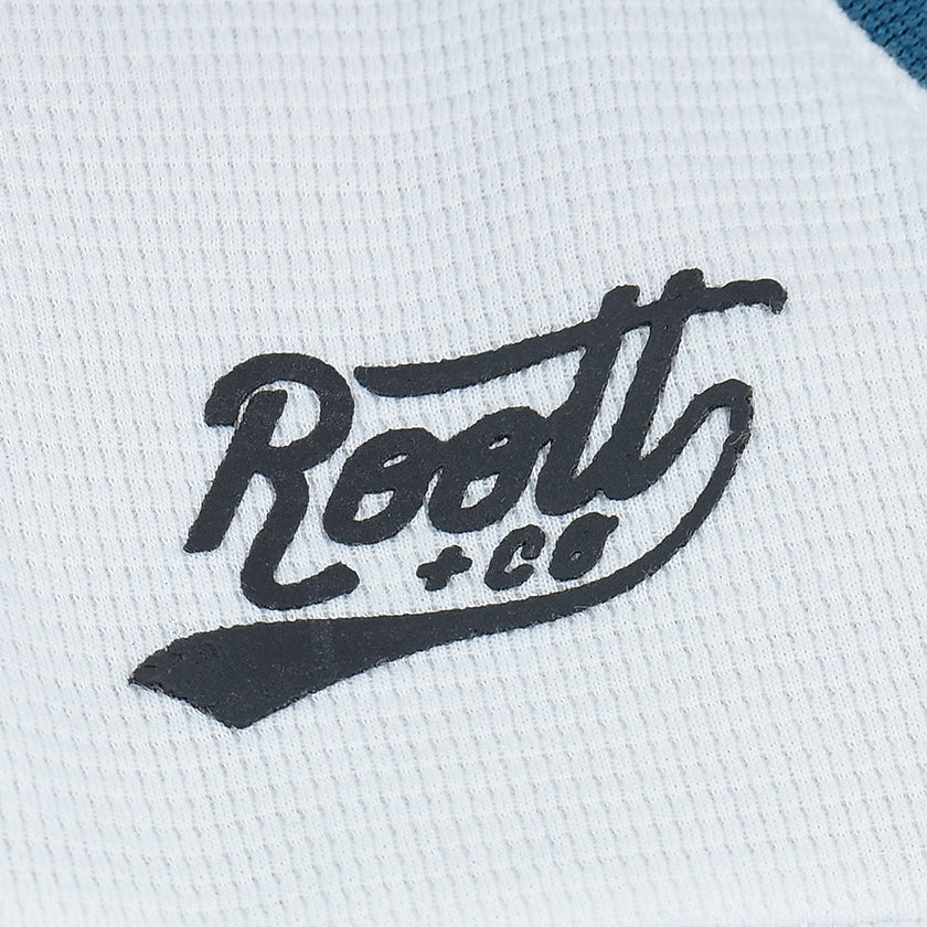 Camiseta atlética presenta gráficos ROOTT+CO en la parte delantera. Luce marquilla código en el costado.