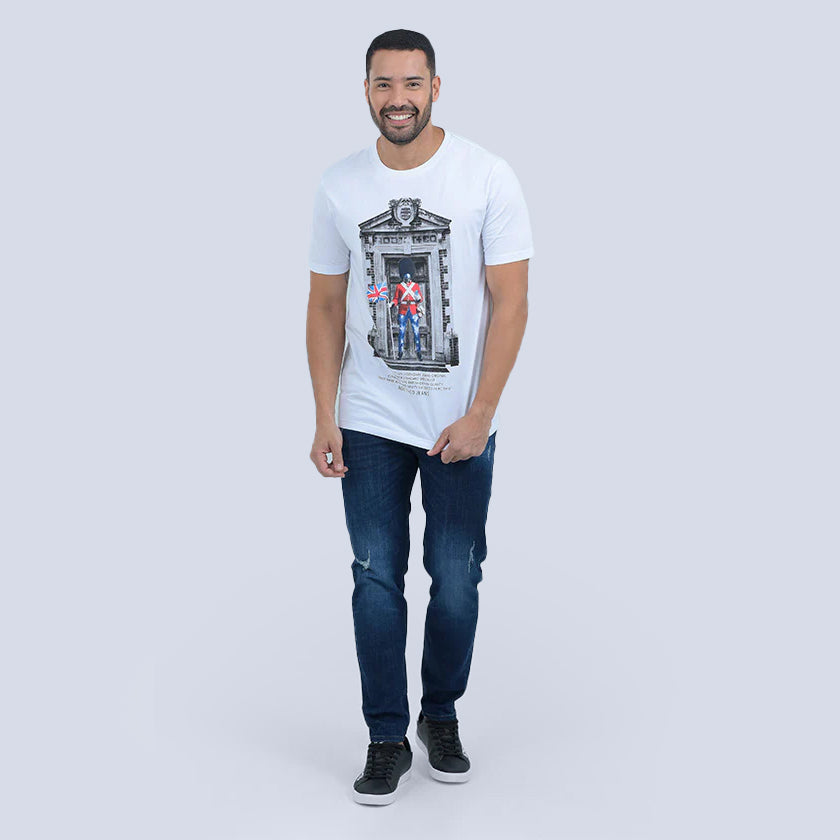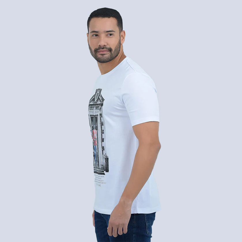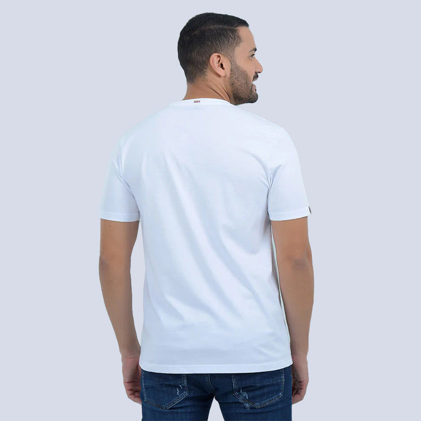 Camiseta para hombre. Presenta gráfico ROOTT+CO en el pecho y marquillas de la marca ROOTT+CO.