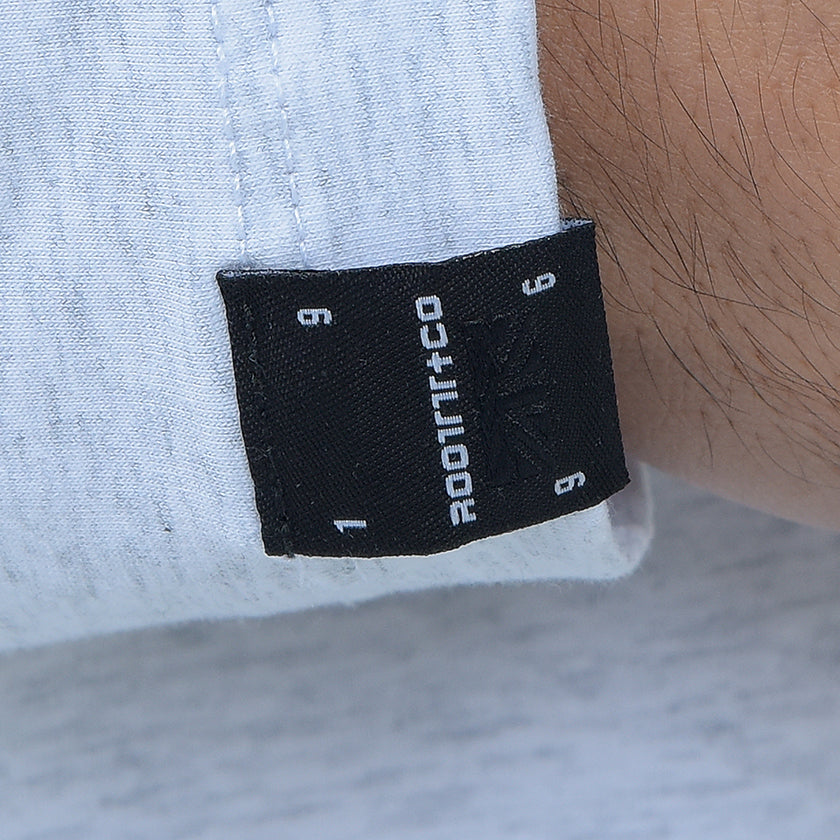 Camiseta para hombre. Presenta gráficos ROOTT+CO en la parte delantera y trasera. Luce marquillas banderilla ROOTT+CO.