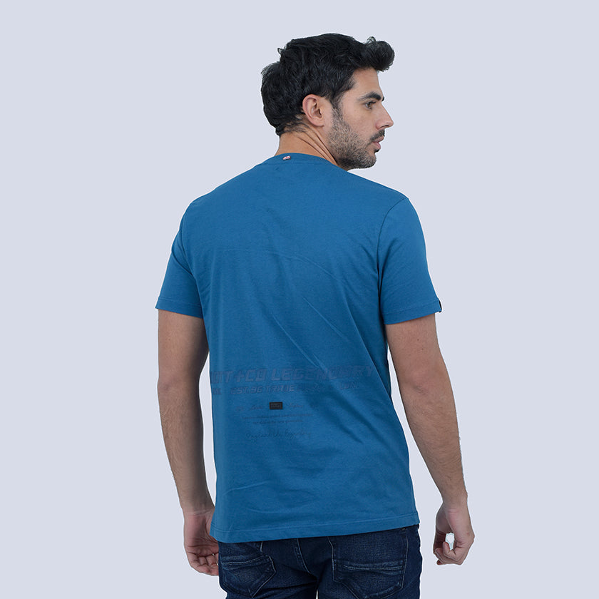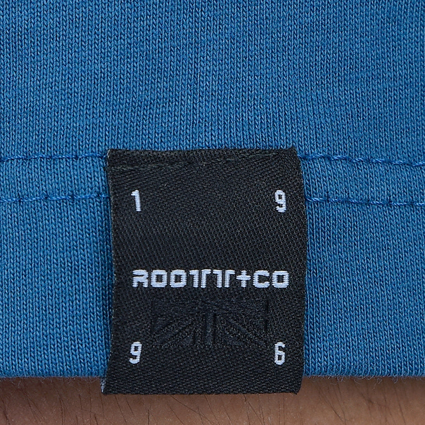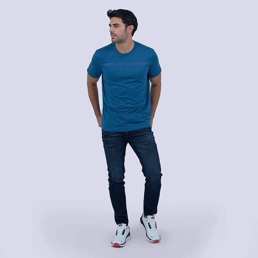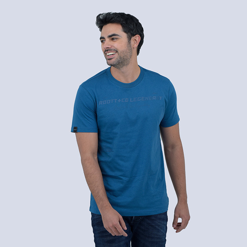 Camiseta para hombre. Presenta gráfico ROOTT+CO en el pecho y marquillas de la marca ROOTT+CO.
