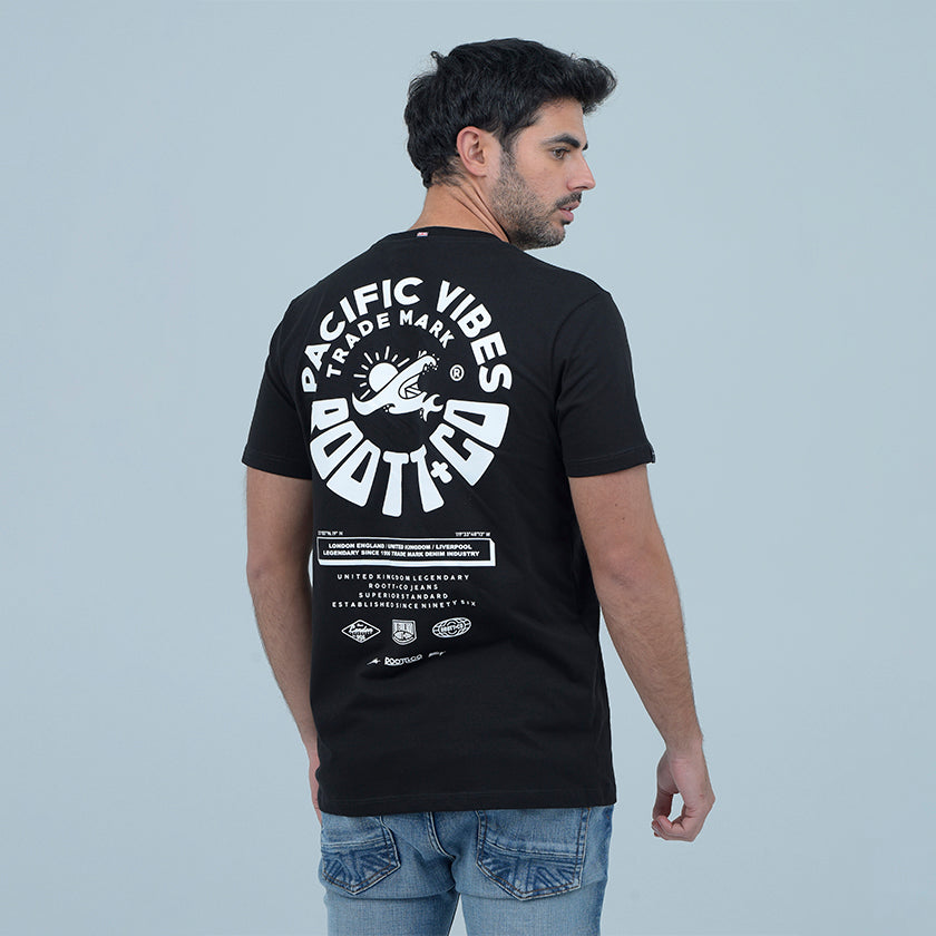 Camiseta para hombre presenta estampados ROOTT+CO, luce marquilla en la manga.