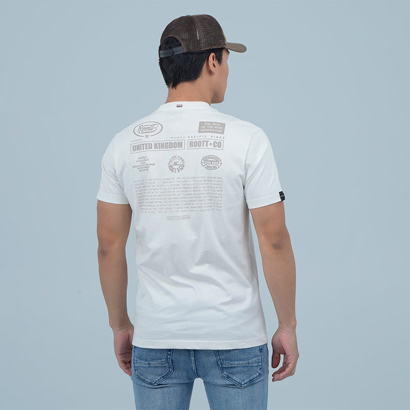 Camiseta para hombre presenta estampado ROOTT+CO en el pecho y espalda, luce marquilla en la manga.
