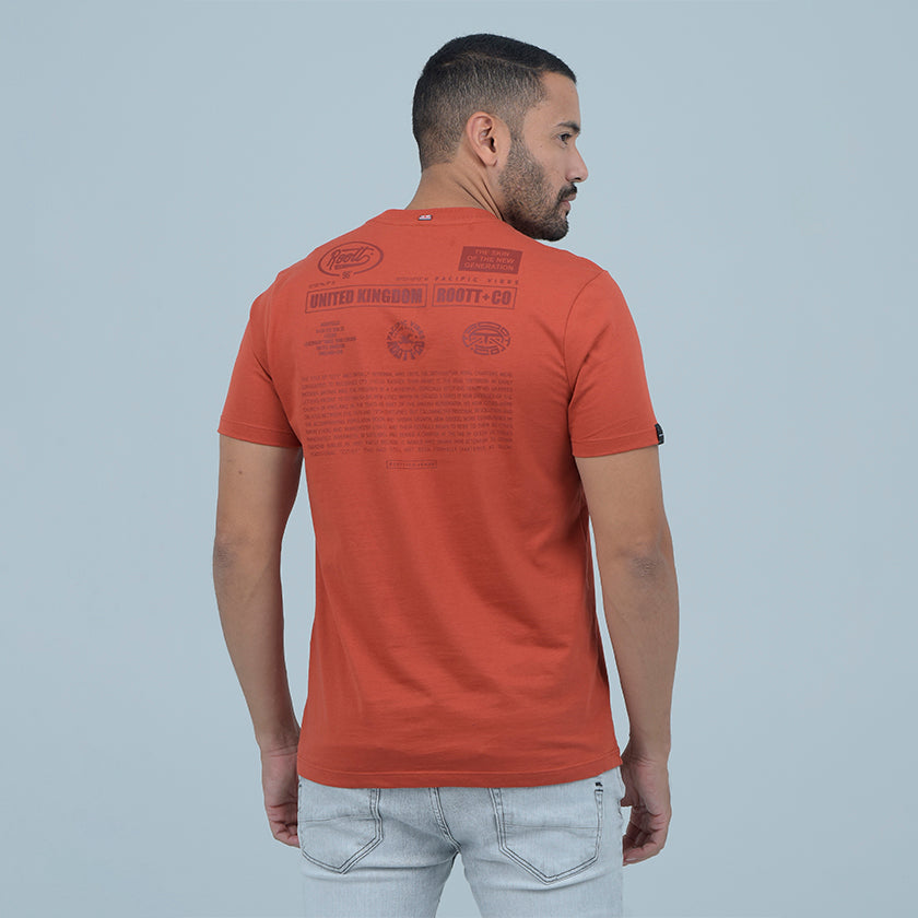 Camiseta para hombre presenta estampados ROOTT+CO, luce marquilla en la manga.