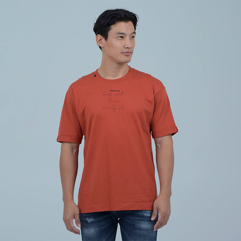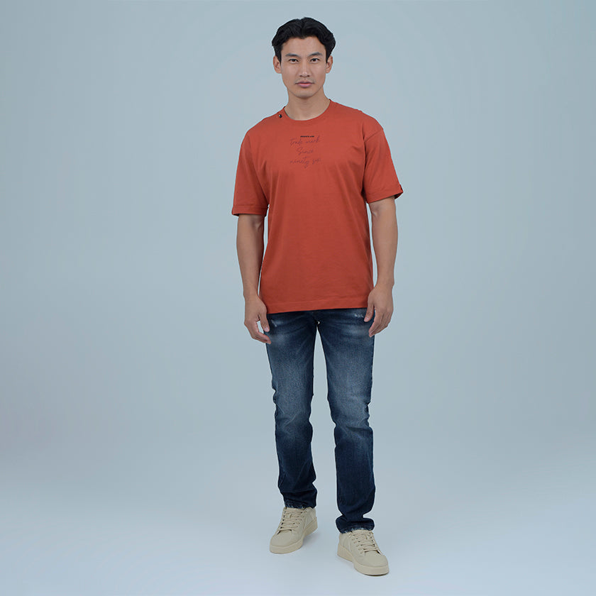 Camiseta de silueta clásica confeccionada en algodón suave y transpirable, ideal para el uso diario. Su diseño minimalista destaca por el detalle tipográfico en el pecho que añade un toque urbano y contemporáneo. El color terracota le da carácter y combina fácilmente con jeans o pantalones neutros para un look casual con personalidad.