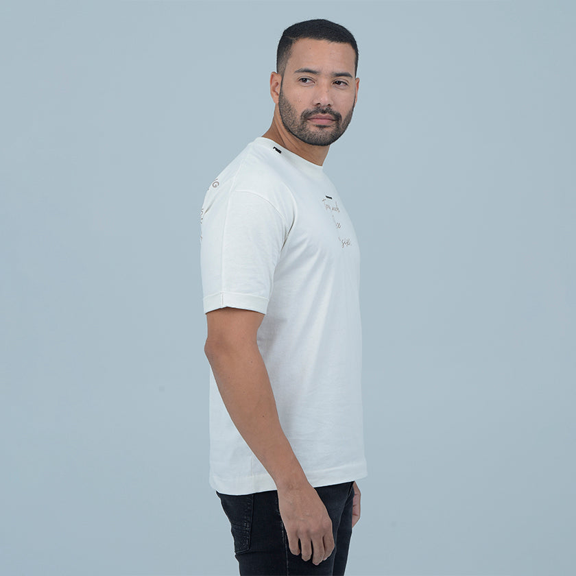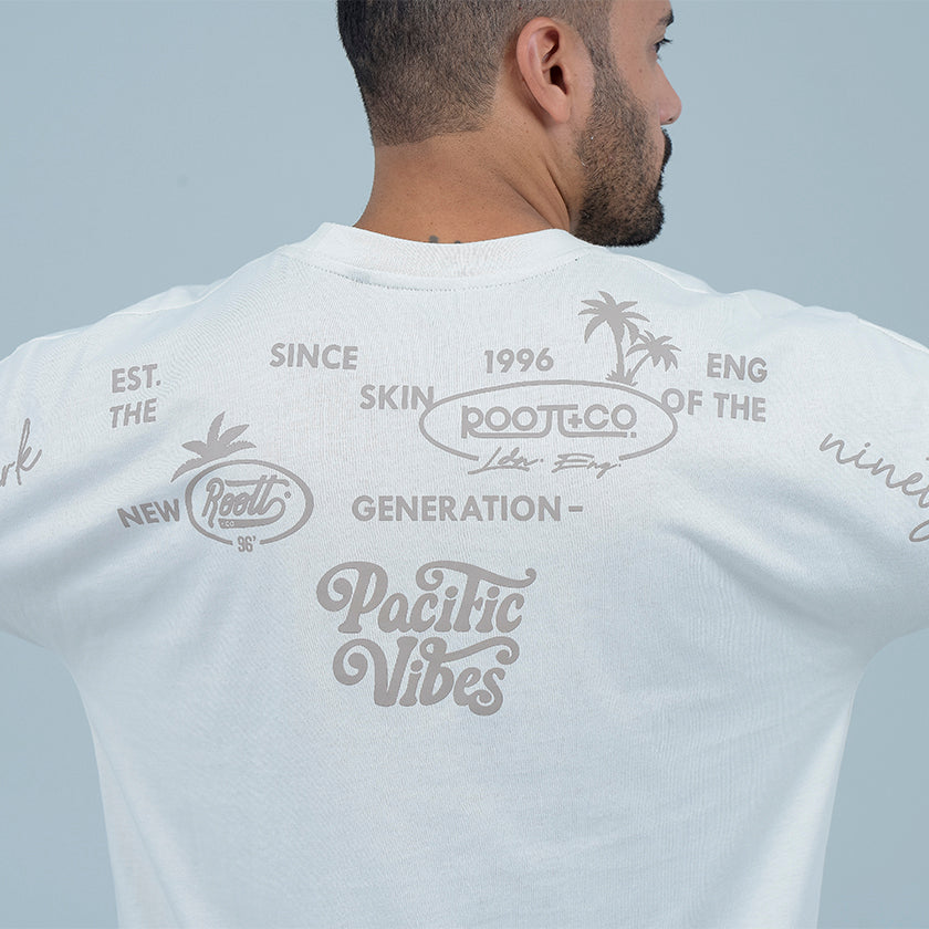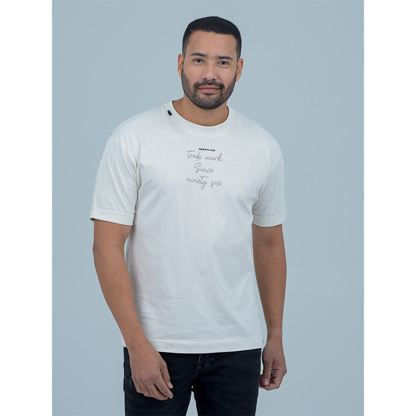 Camiseta para hombre presenta estampados ROOTT+CO, luce marquilla en la manga.