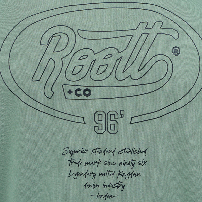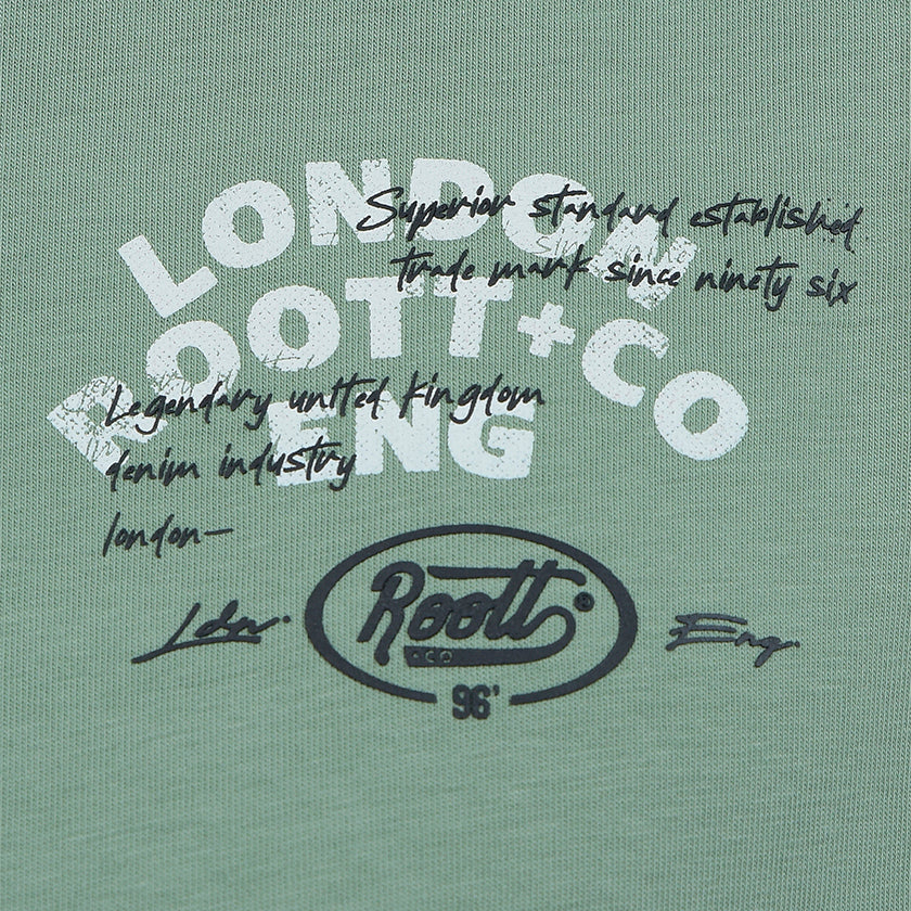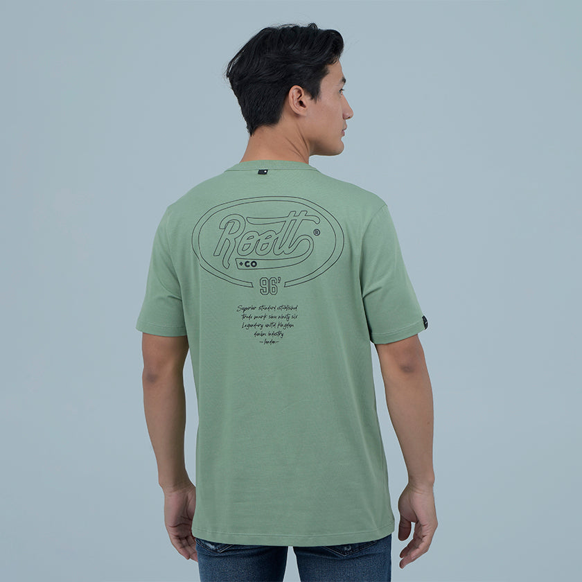Camiseta para hombre. Presenta gráficos ROOTT+CO en la parte delantera, diseño en mangas y marquillas de la marca ROOTT+CO.