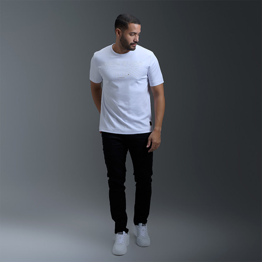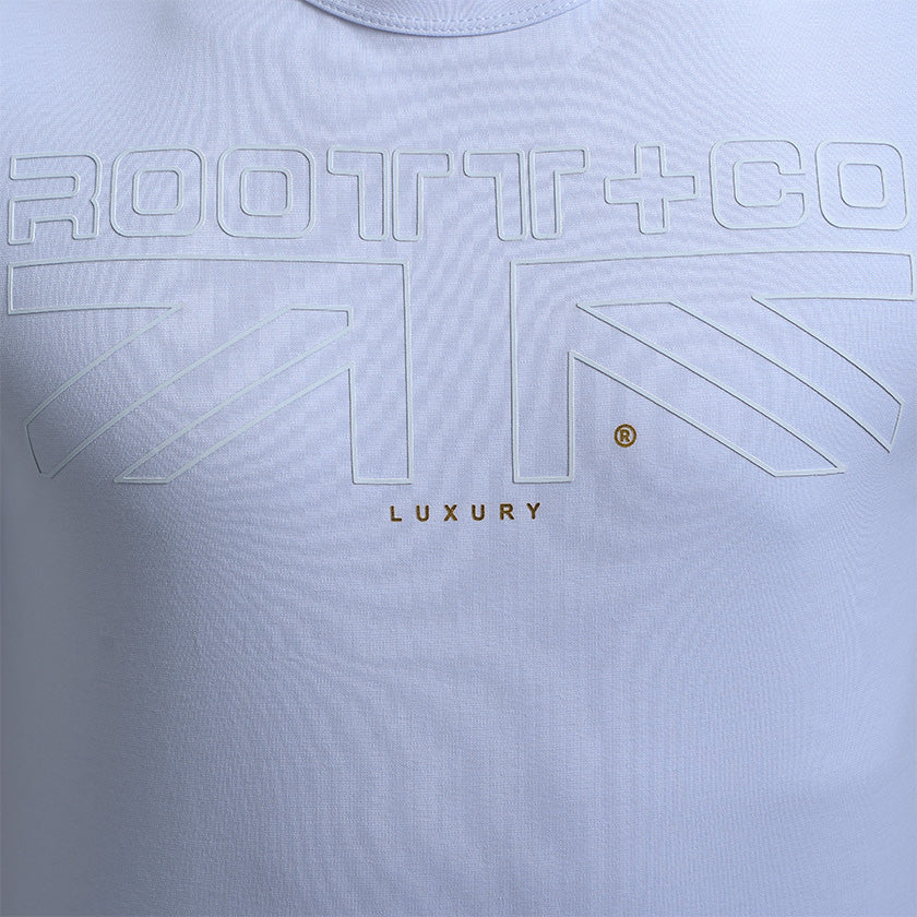 Camiseta para hombre. Presenta gráficos ROOTT+CO en la parte delantera, diseño en mangas y marquillas de la marca ROOTT+CO.