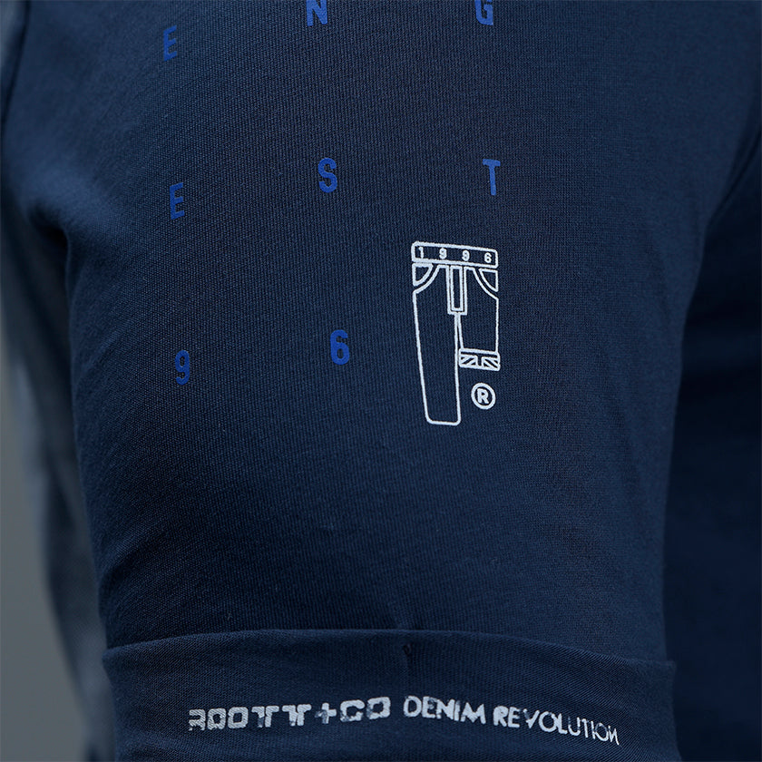 Camiseta para hombre presenta estampados ROOTT+CO, luce marquilla en la manga.