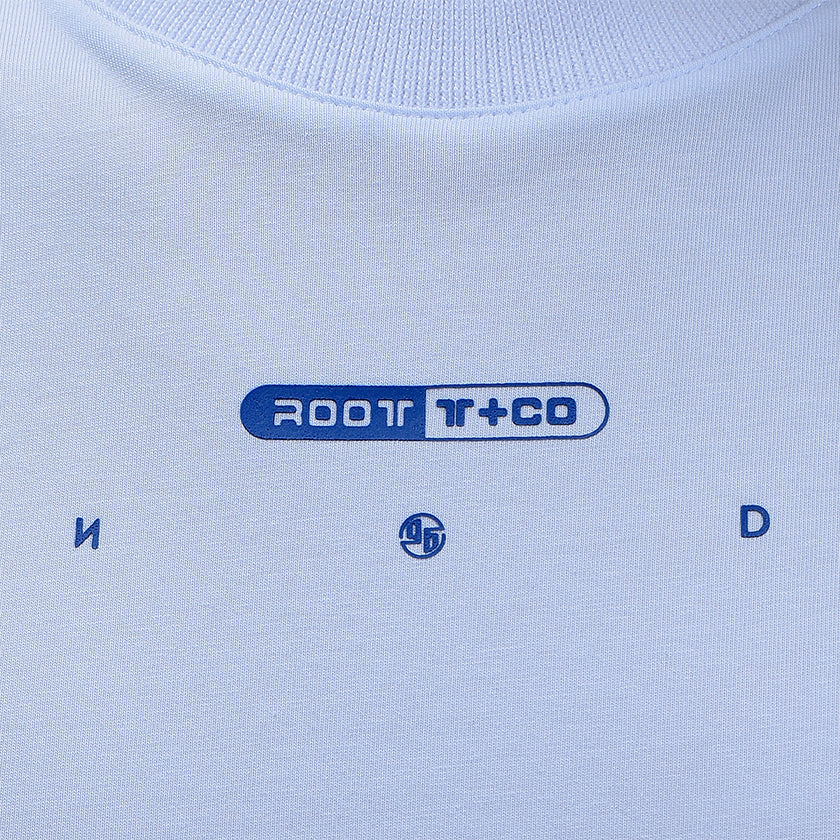 Camiseta para hombre presenta estampados ROOTT+CO, luce marquilla en la manga.