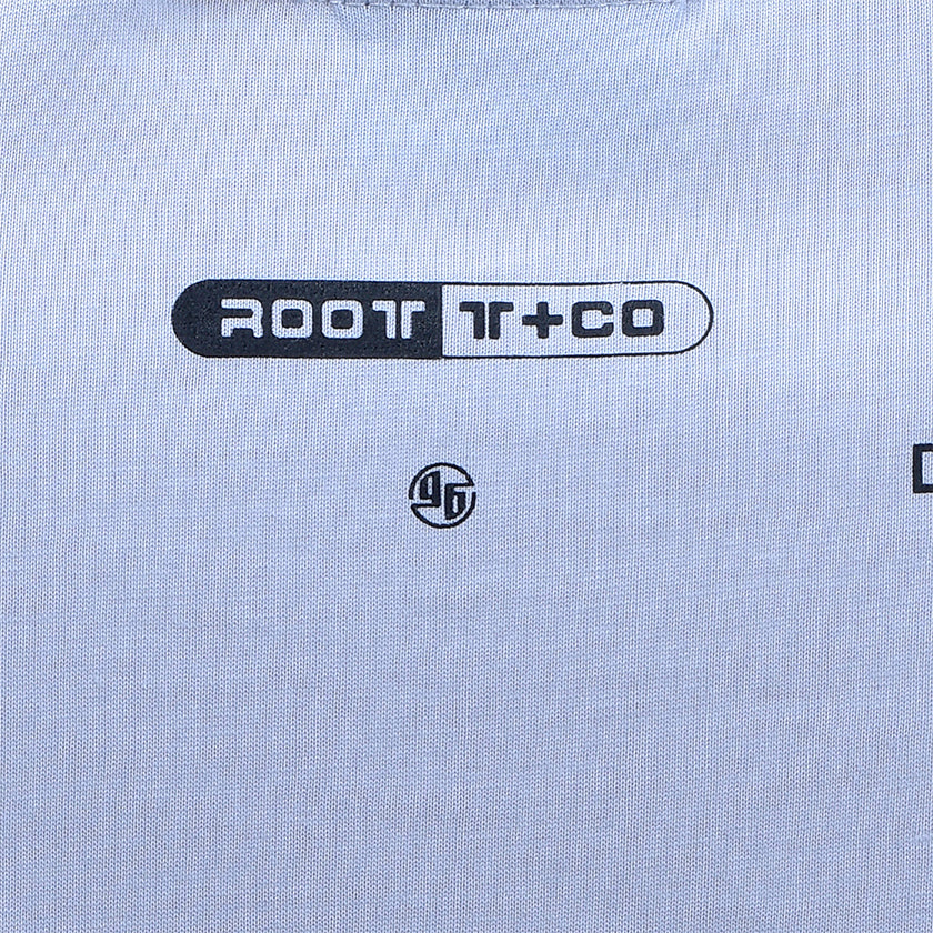Camiseta para hombre presenta estampado ROOTT+CO en el pecho y espalda.