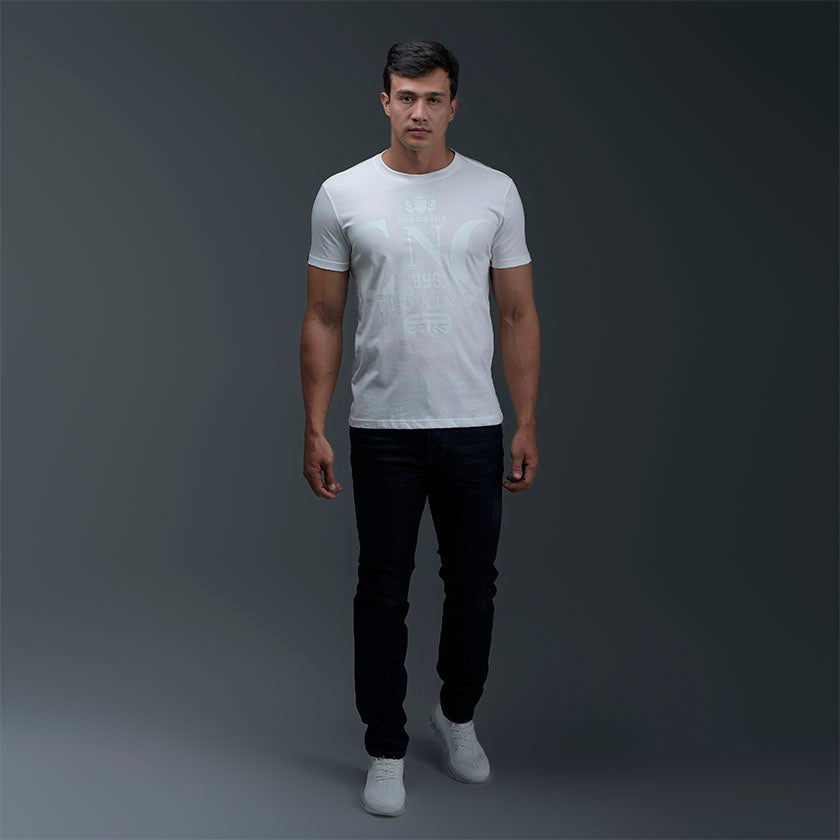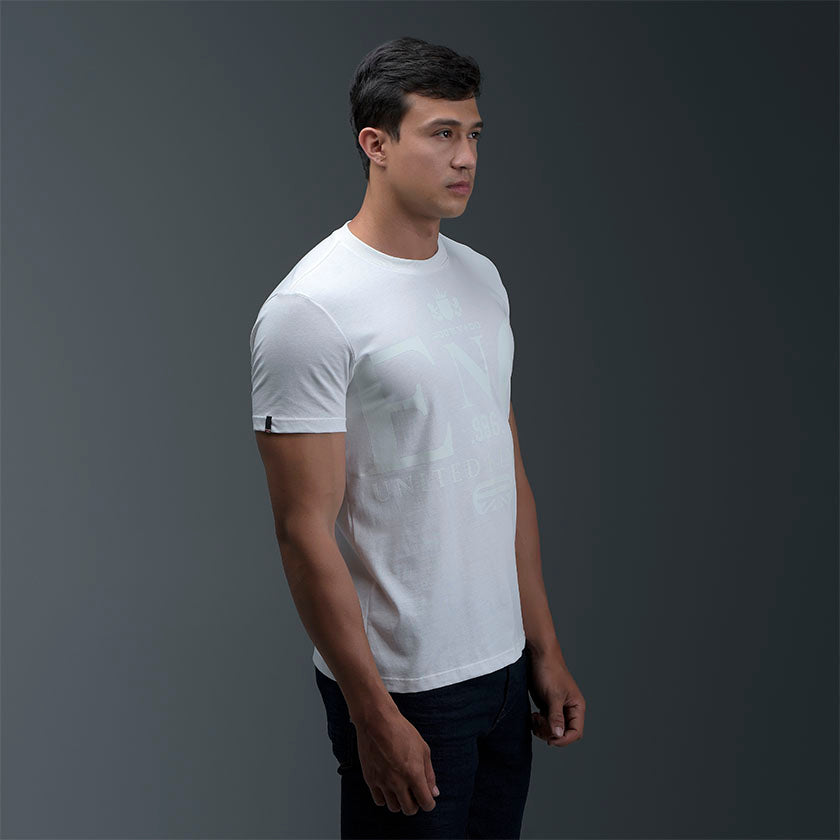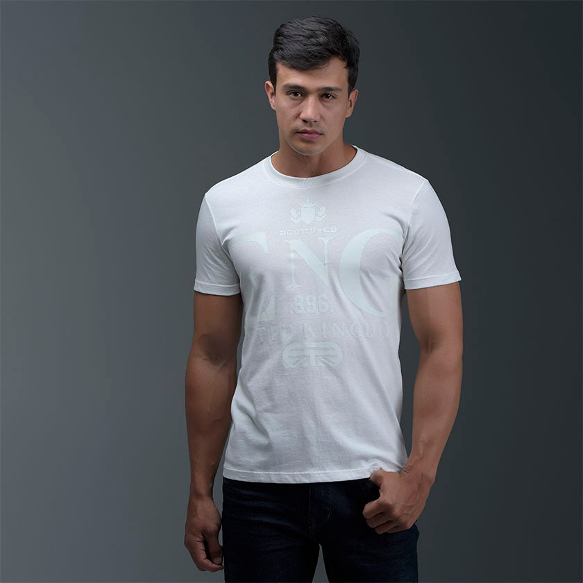 Camiseta para hombre presenta estampados ROOTT+CO, luce marquilla en la manga.