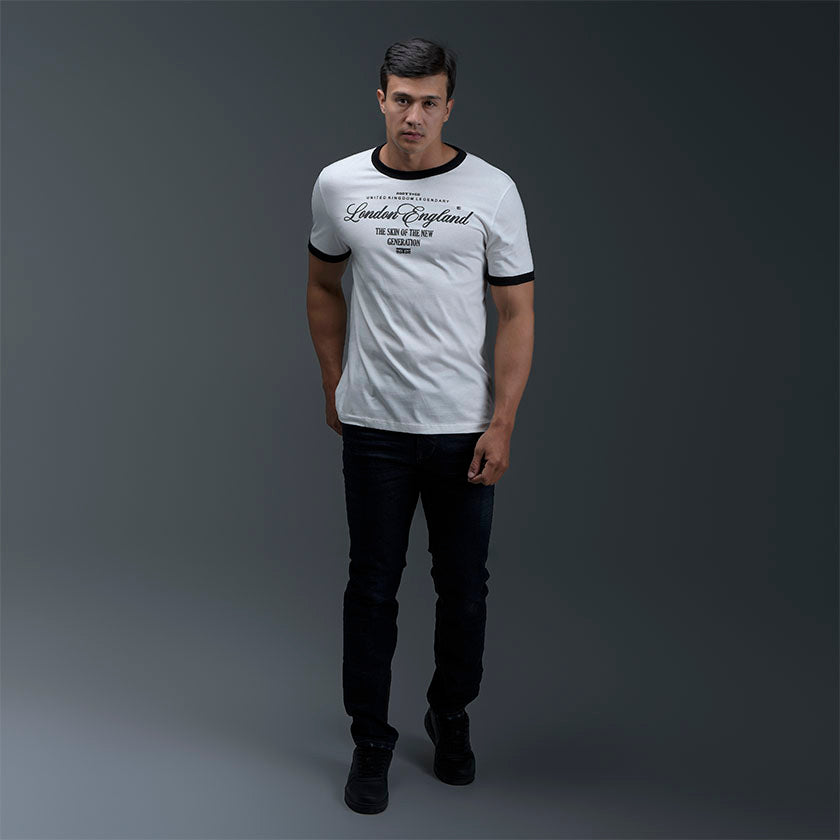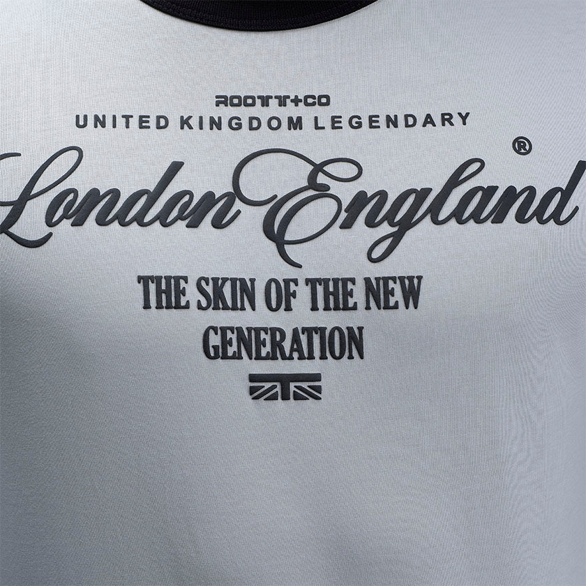 Camiseta para hombre. Presenta gráficos ROOTT+CO en la parte delantera, diseño en mangas y marquillas de la marca ROOTT+CO.