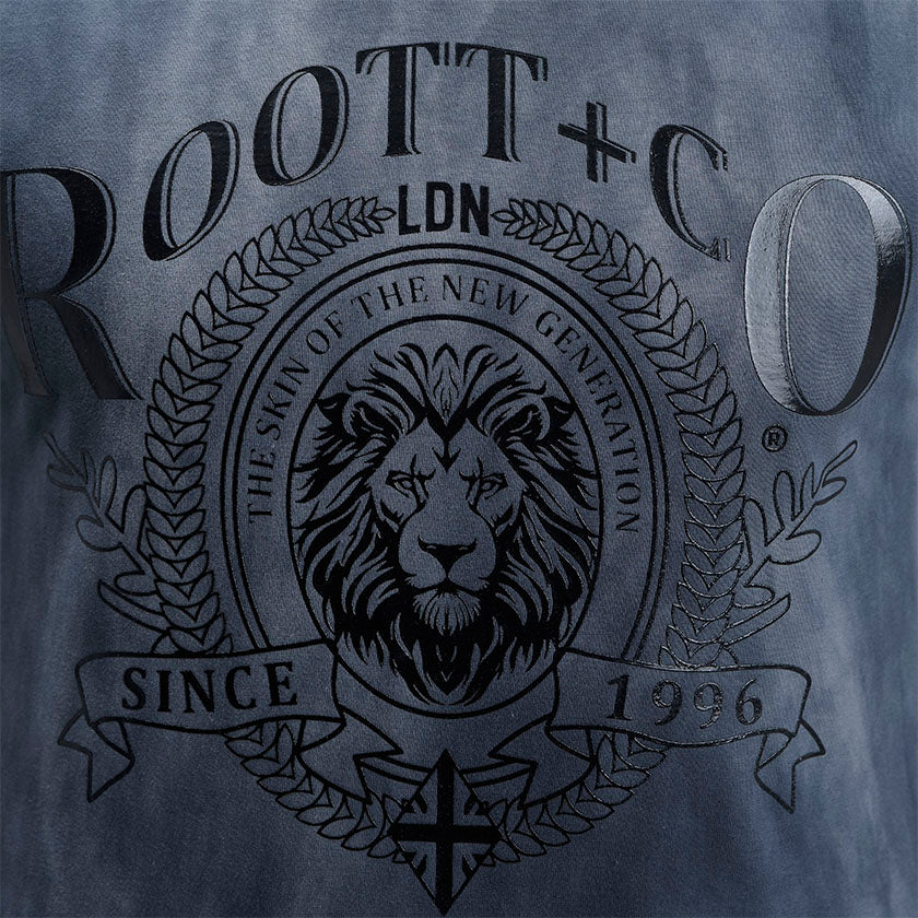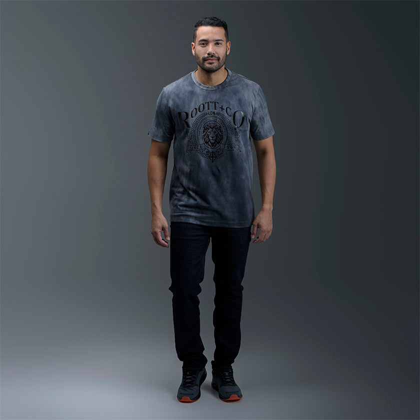 Camiseta para hombre. Presenta gráficos ROOTT+CO en la parte delantera, diseño en mangas y marquillas de la marca ROOTT+CO.