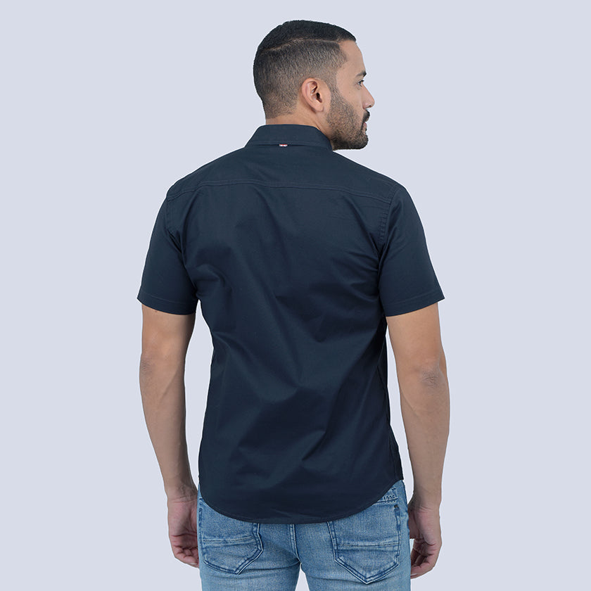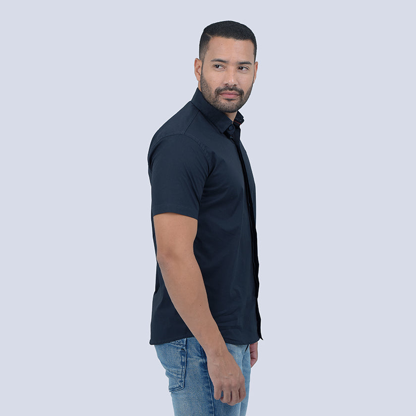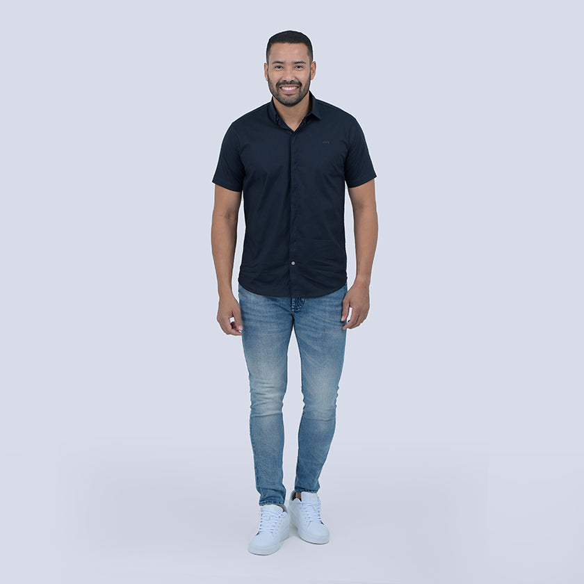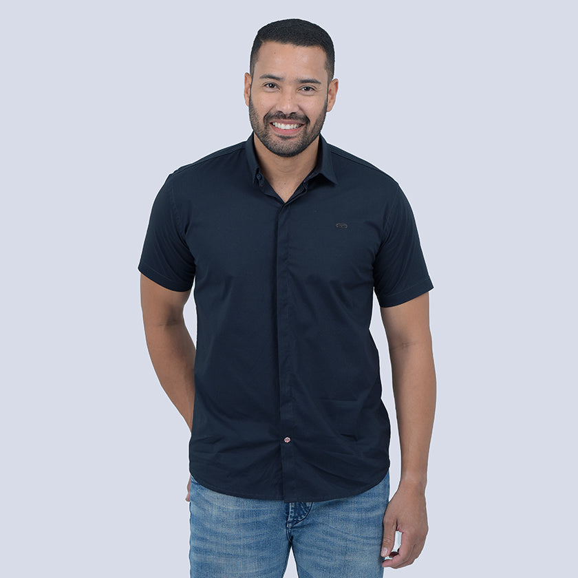 Camisa tejida para hombre luce logo ROOTT+CO en el pecho y marquilla bandera en la parte trasera, el bajo ligeramente redondeado remata esta prenda.