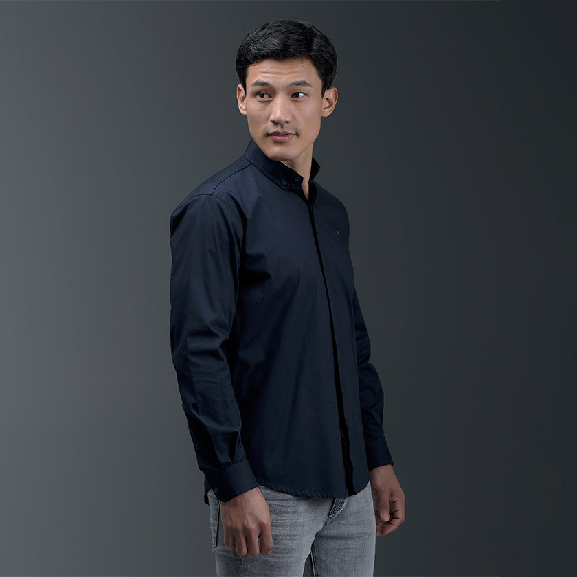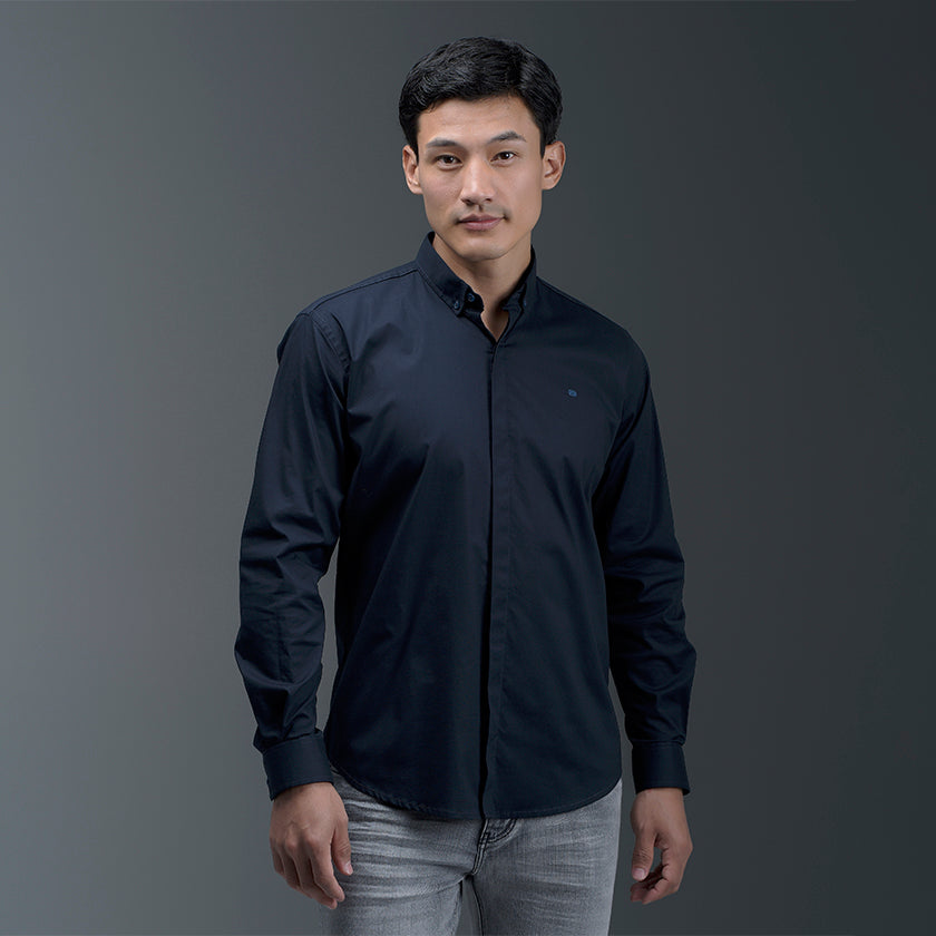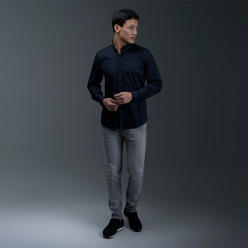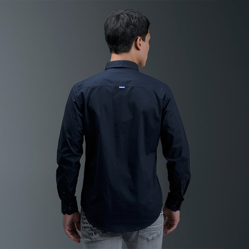 Camisa manga larga para hombre presenta bandera ROOTT+CO estampada en el pecho, el bajo ligeramente redondeado remata esta prenda.