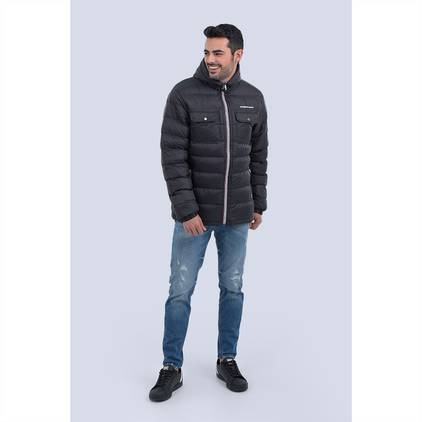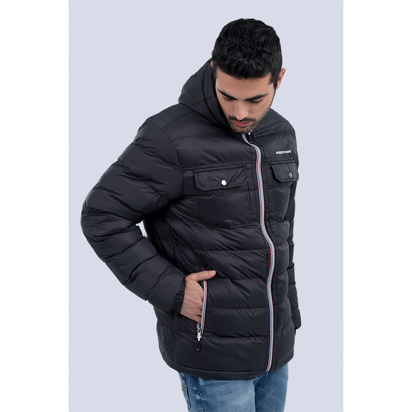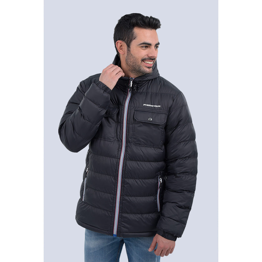 Chaqueta abullonada para hombre. Presenta logo ROOTT+CO en el pecho y cierre de cremallera, luce diseño acolchado con pespuntes en horizontal y bolsillos con ribete ancho delanteros.