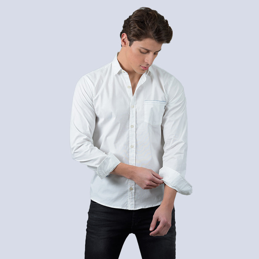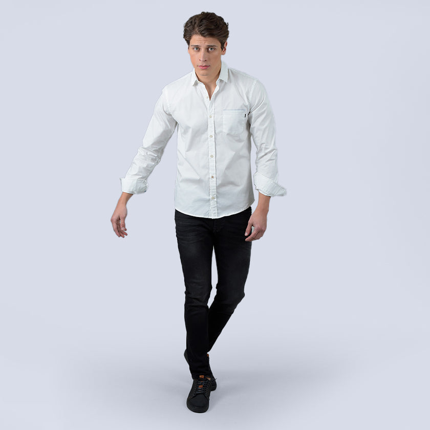 Camisa manga larga para hombre presenta bandera ROOTT+CO estampada en el pecho, el bajo ligeramente redondeado remata esta prenda.