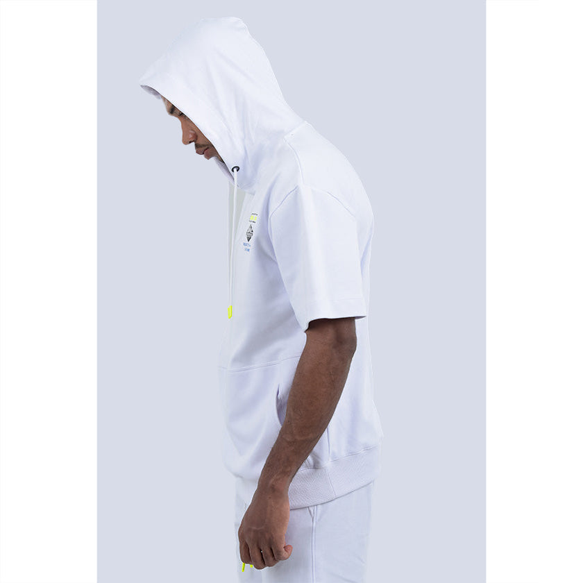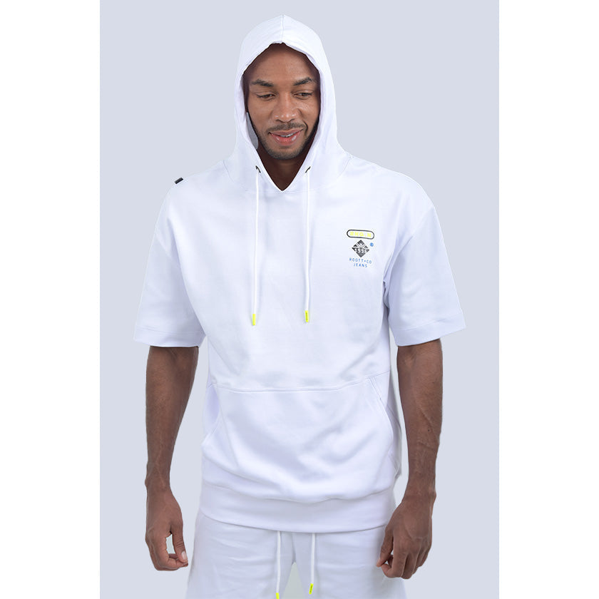 Hoodie para hombre. Presenta gráfico ROOTT+CO estampado en el pecho, cordones ligados con logo de la marca y bolsillo de ribete ancho delantero.
