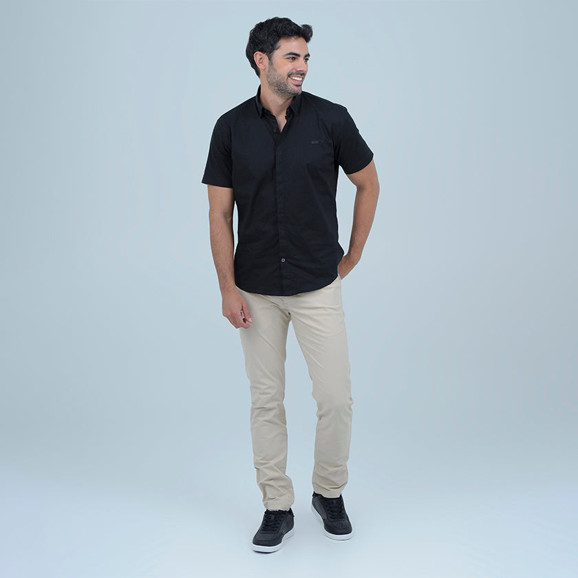 Pantalón para hombre luce marquilla bandera en el bolsillo trasero, de corte ajustado.