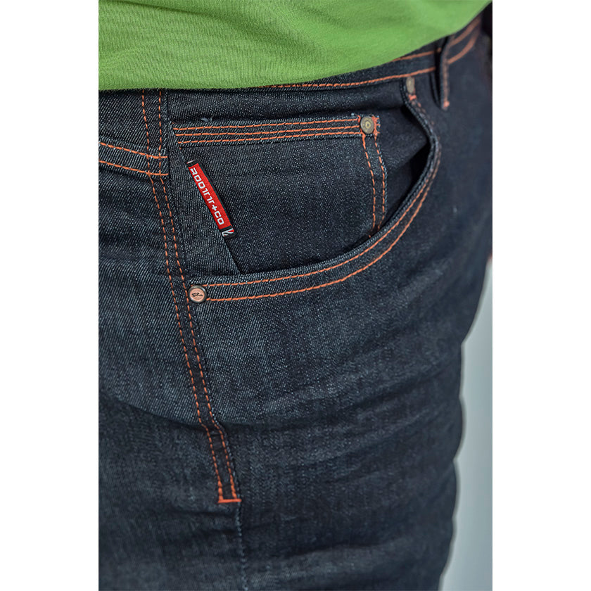 Los Jeans Slim London son una prenda con molde clásico y cómodo, silueta de corte recto en la pierna y bota, luce bolsillo para monedas y marquilla bandera ROOTT+CO, líneas pespunteadas y redondeadas de los bolsillos están reforzadas.