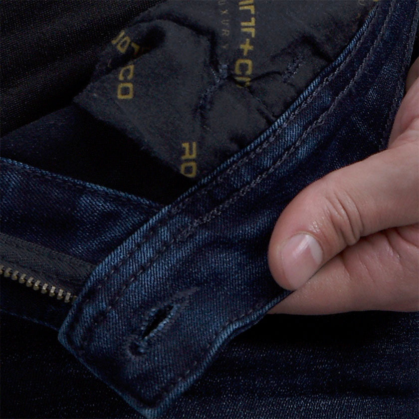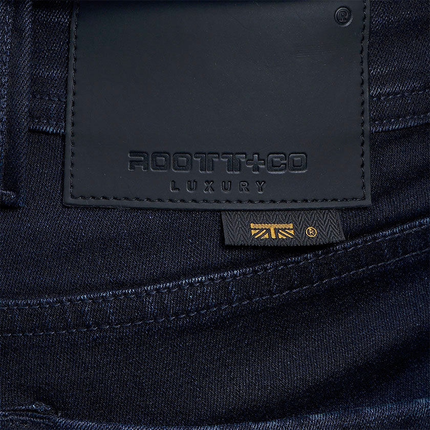 Jeans de 5 bolsillos, Slim fit, confeccionado en denim premium 67% Algodón, 31% poliéster y 2% spandex. Marquilla, bordeado, hebilla y garra ROOTT+CO JEANS. Tiro regular, silueta delgada de corte semi ajustado.