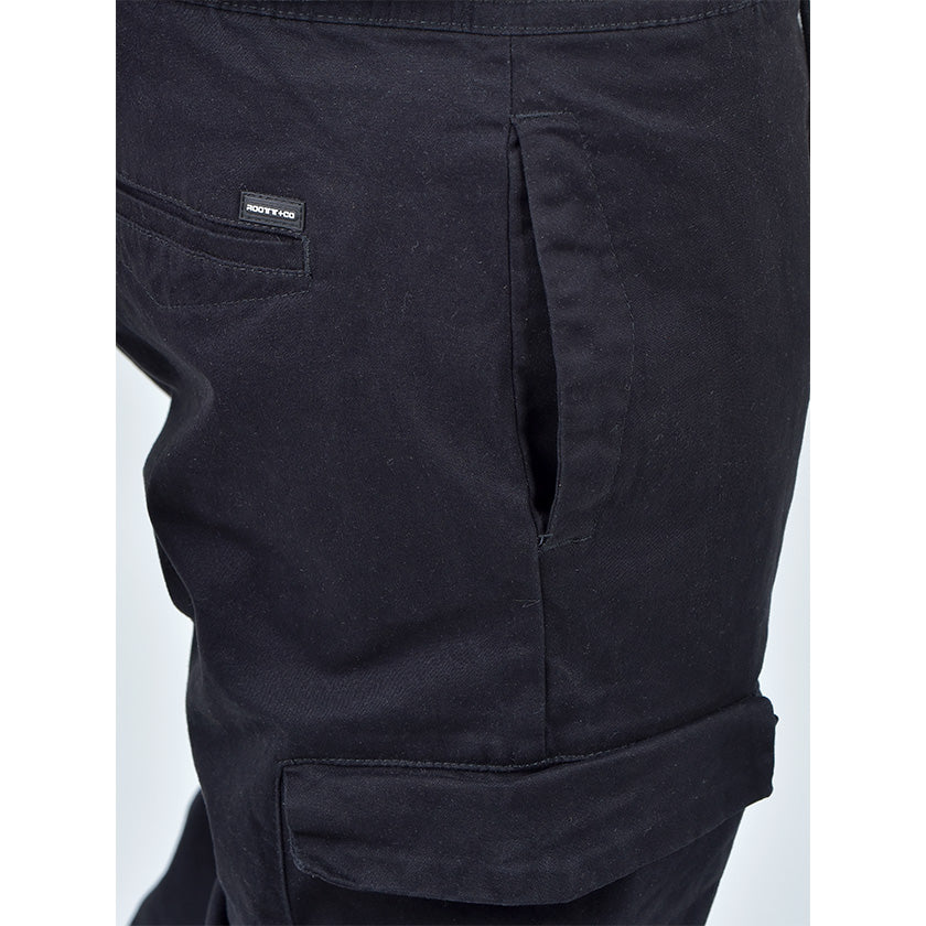 Los Joggers cargo son una prenda con molde clásico con bolsillos en los muslos de corte holgado con una silueta más amplia en la pierna y bota, luce marquilla ROOTT+CO, líneas pespunteadas y redondeadas de los bolsillos están reforzadas.