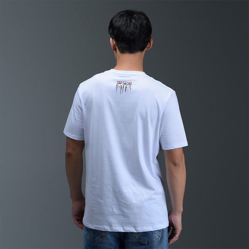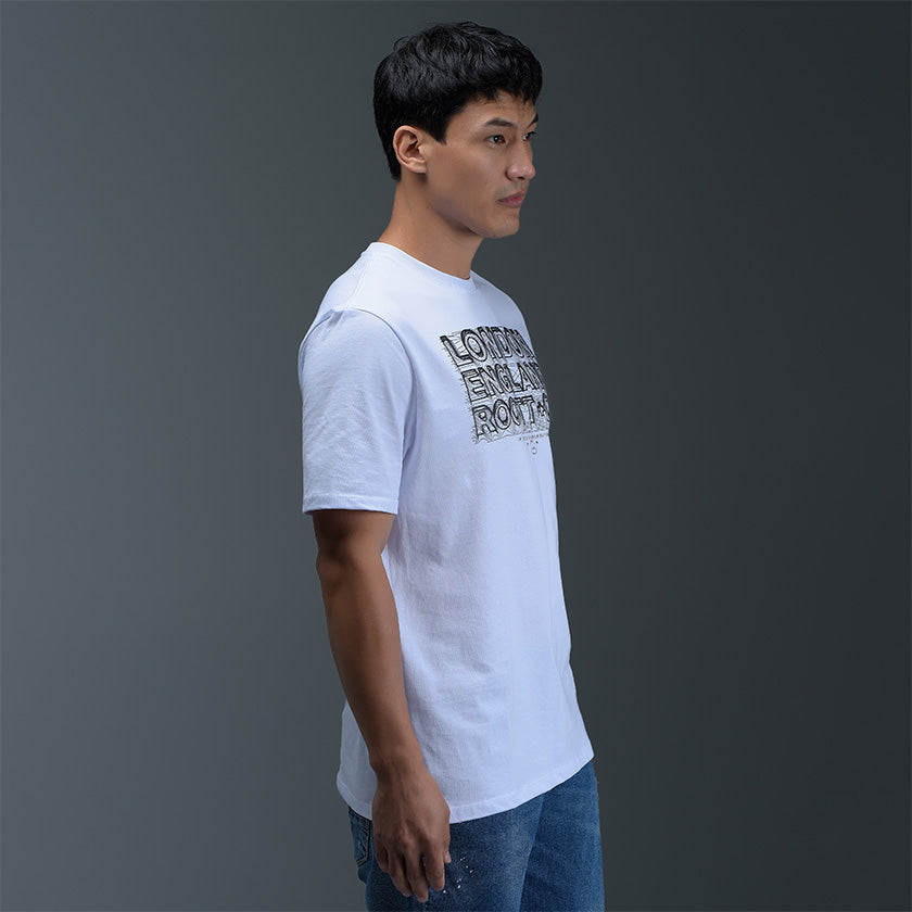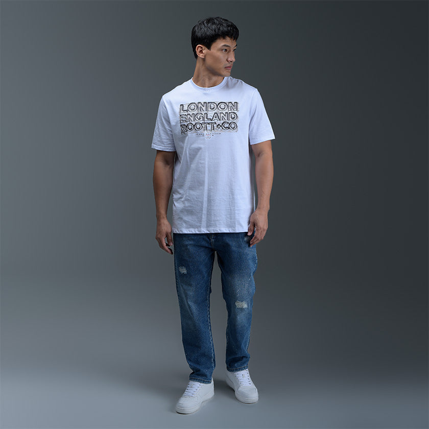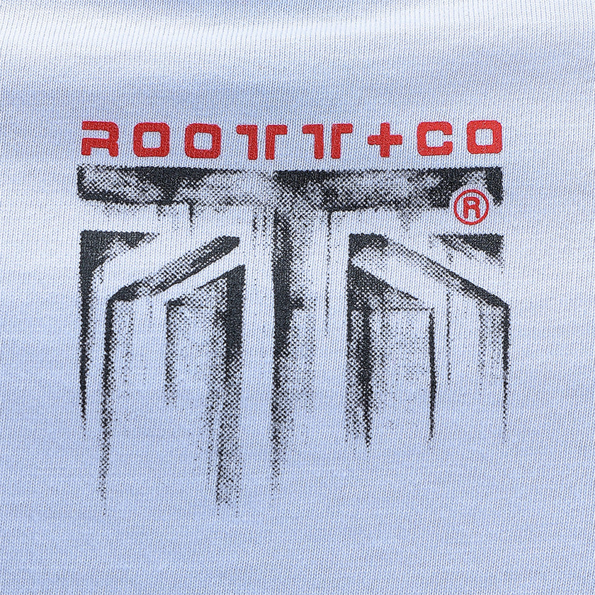 Camiseta para hombre. Presenta gráficos ROOTT+CO en la parte delantera, diseño en mangas y marquillas de la marca ROOTT+CO.