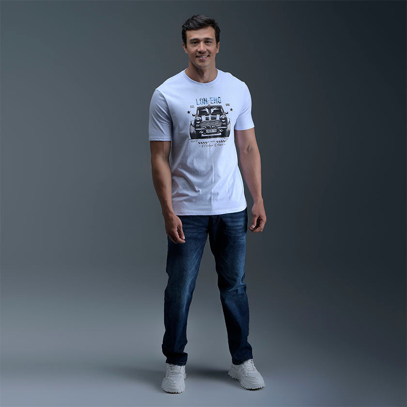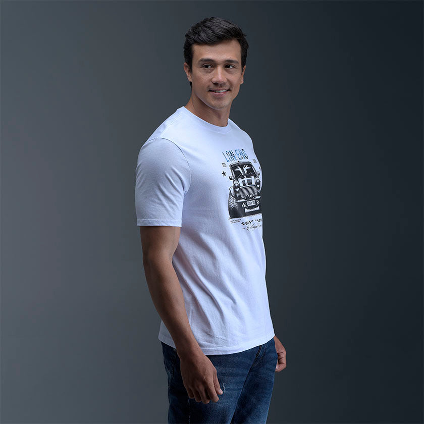 Camiseta para hombre presenta estampados ROOTT+CO, luce marquilla en la manga.