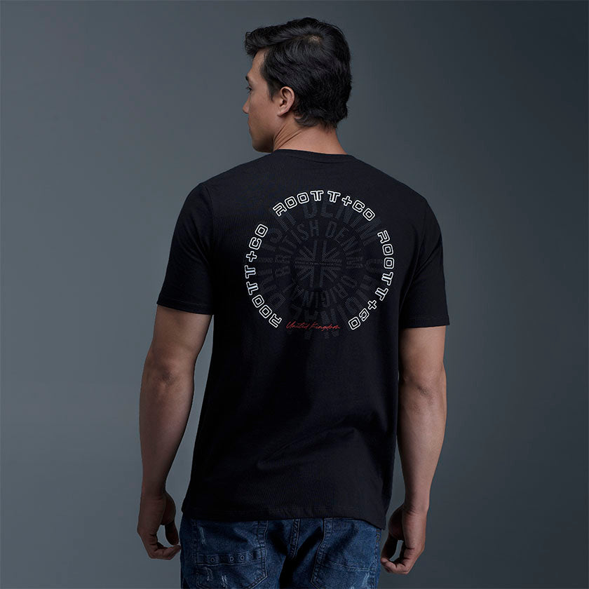 Camiseta para hombre presenta estampados ROOTT+CO, luce marquilla en la manga.