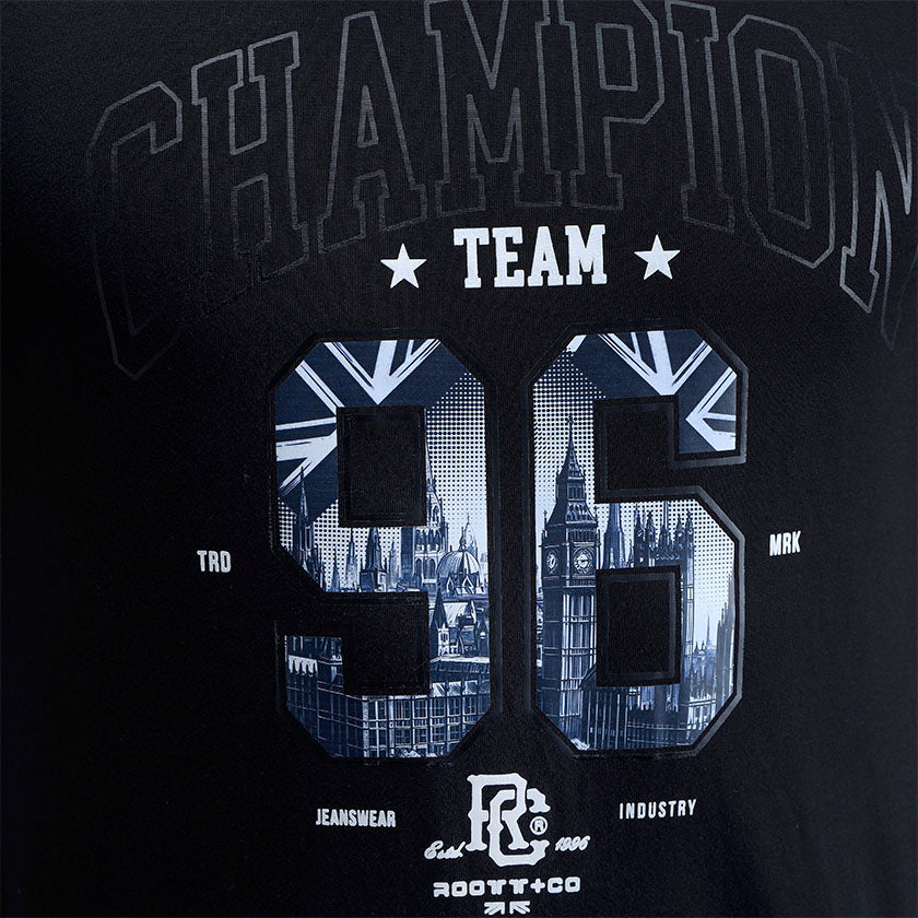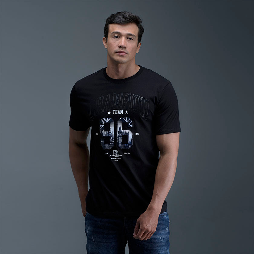 Camiseta para hombre presenta estampados ROOTT+CO, luce marquilla en la manga.