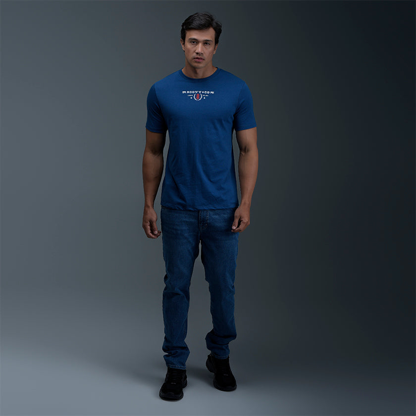 Camiseta para hombre presenta estampados ROOTT+CO, luce marquilla en la manga.