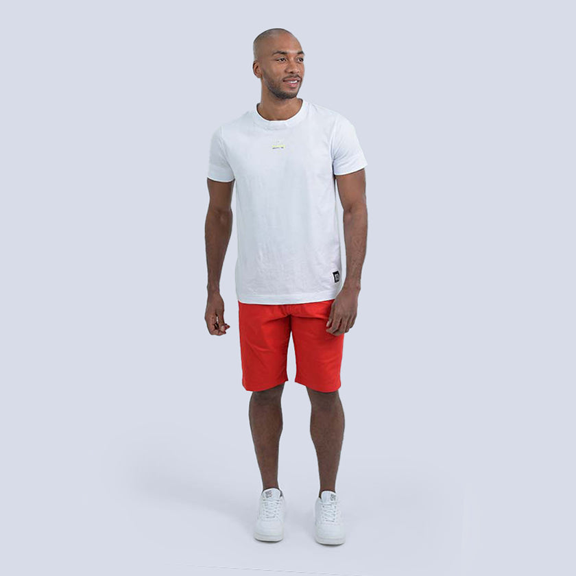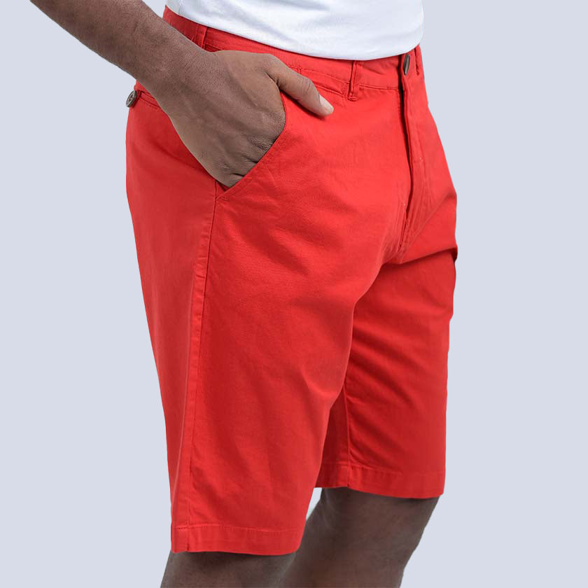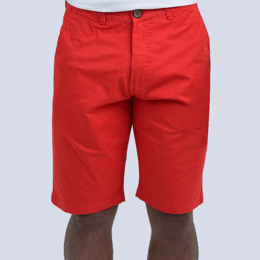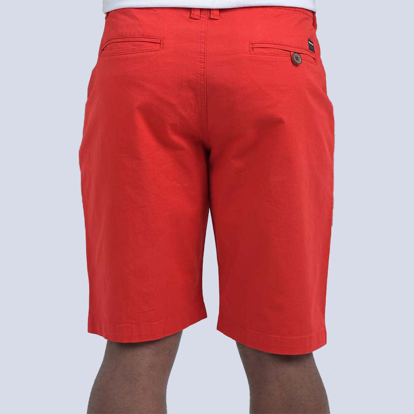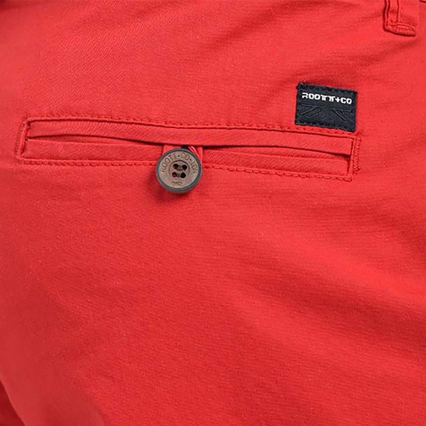 Bermuda para hombre presenta marquilla ROOTT+CO en el bolsillo trasero junto con botón, cómoda ligeramente arriba de la rodilla.