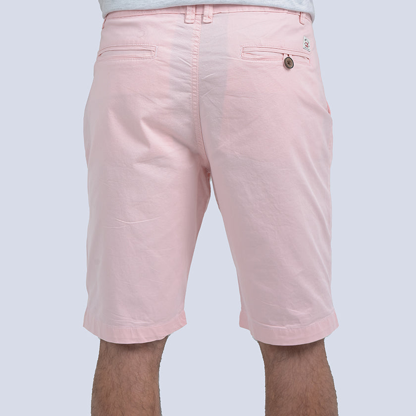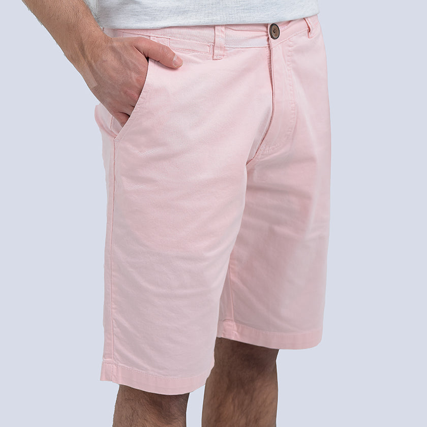 Bermuda para hombre presenta marquilla ROOTT+CO en el bolsillo trasero junto con botón, cómoda ligeramente arriba de la rodilla.