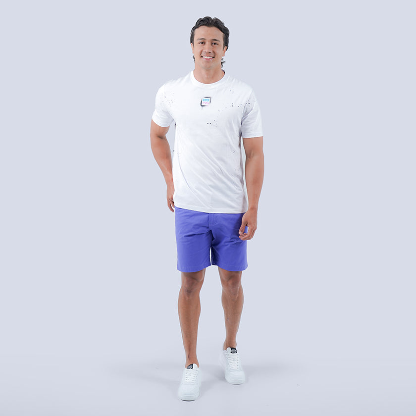 Bermuda para hombre presenta marquilla ROOTT+CO en el bolsillo trasero junto con botón, cómoda ligeramente arriba de la rodilla.