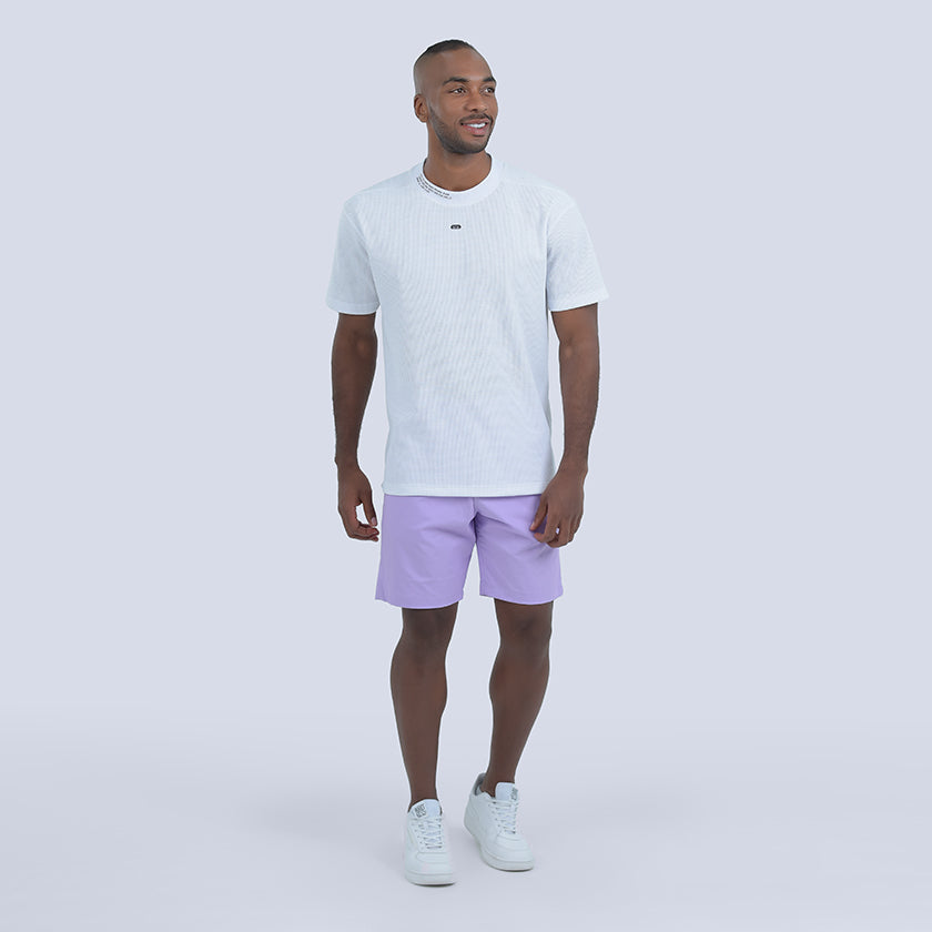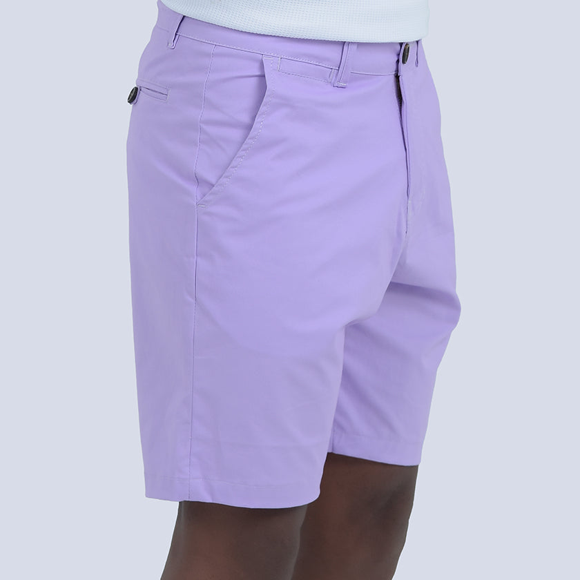 Bermuda para hombre presenta marquilla ROOTT+CO en el bolsillo trasero junto con botón, cómoda ligeramente arriba de la rodilla.