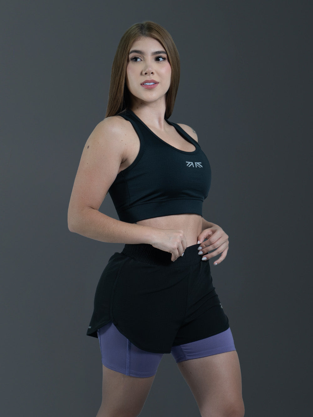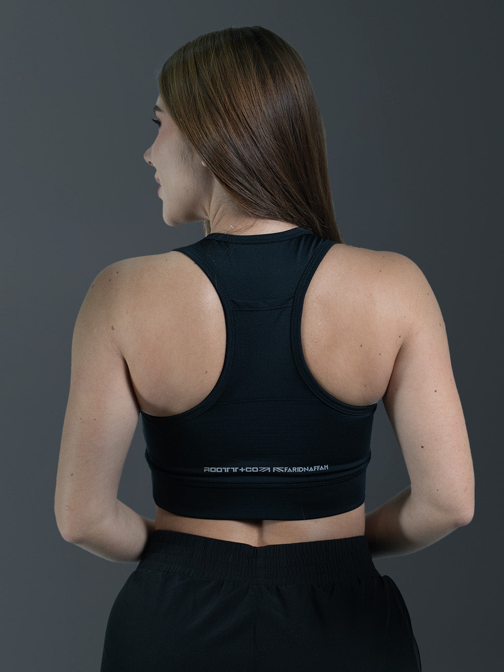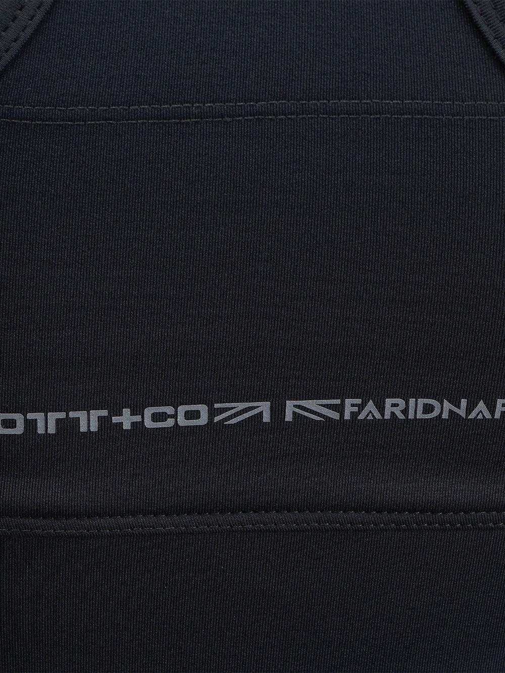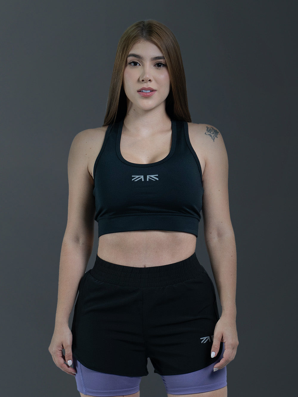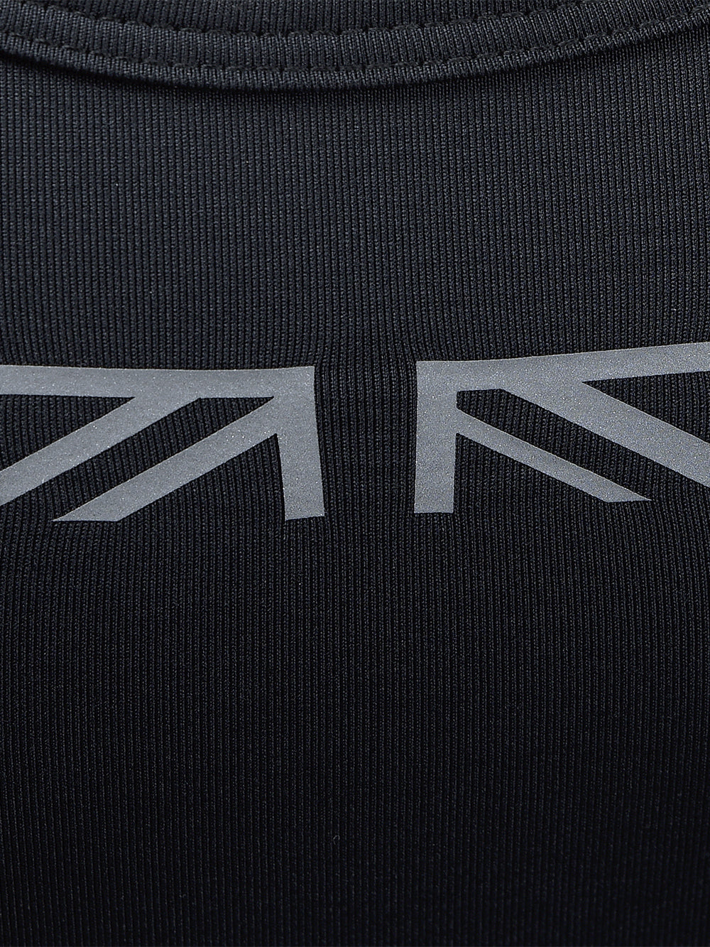 Top deportivo para mujer luce logo bandera estampado en el pecho.