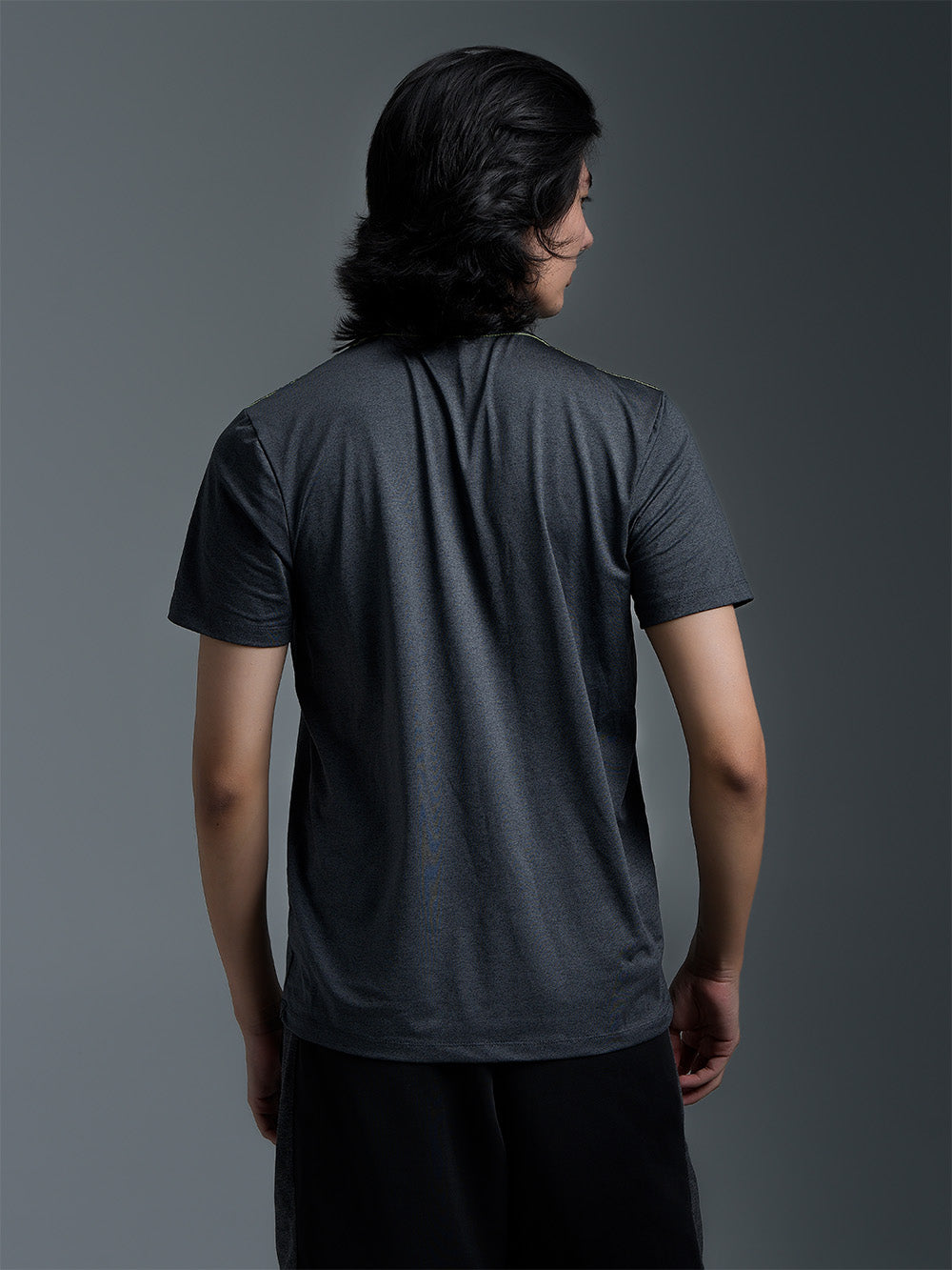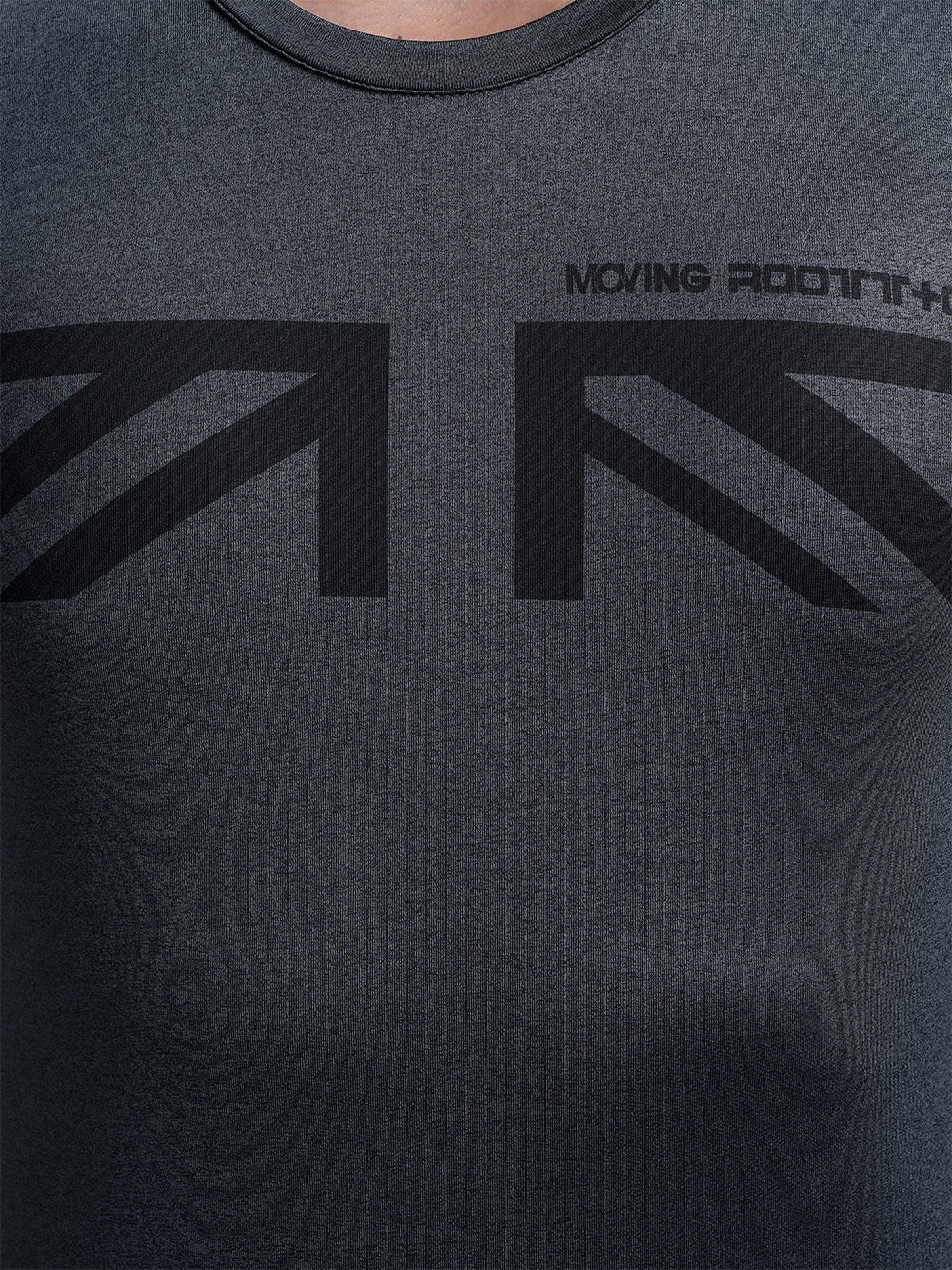 Camiseta deportiva presenta gráfico bandera ROOTT+CO en el pecho.