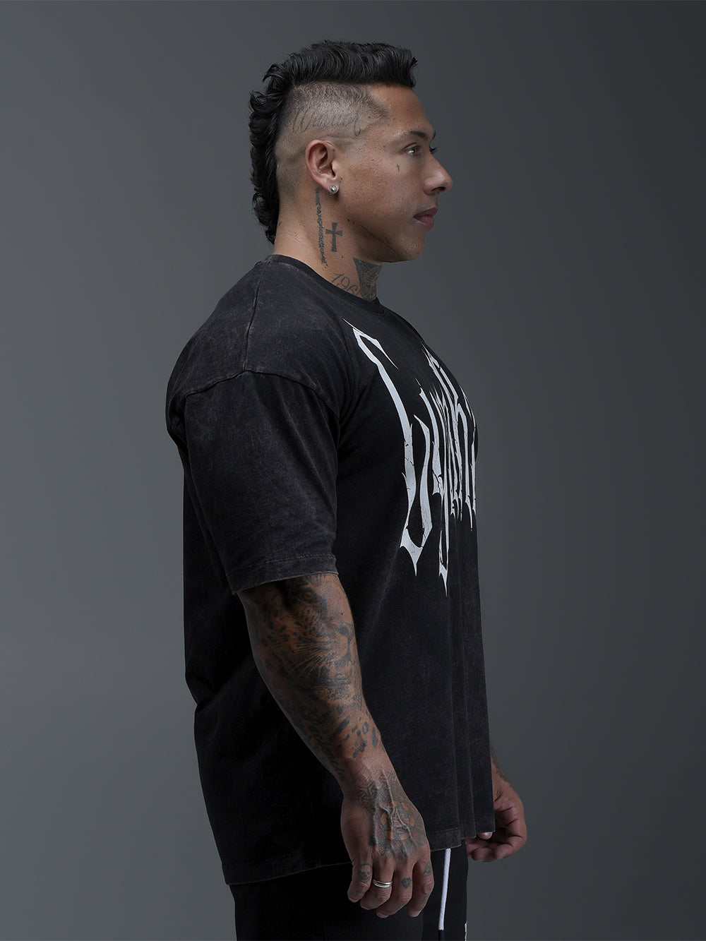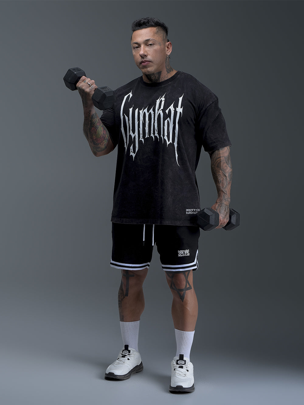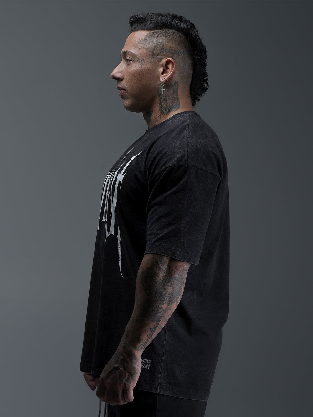 Camiseta oversize para hombre. Presenta estampado de GYMRAT en el diseño de la camiseta, proceso de lavado en la tela para una mayor suavidad al contacto con la piel.
