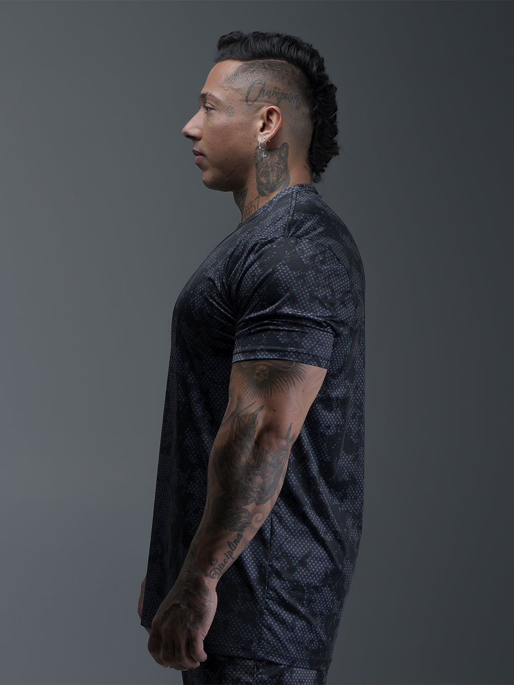 Camiseta para hombre. Presenta diseño full estampado y logo ROOTT+CO en el pecho, siluetas grabadas en el diseño de la camiseta, diseño en mangas y marquillas de la marca.
