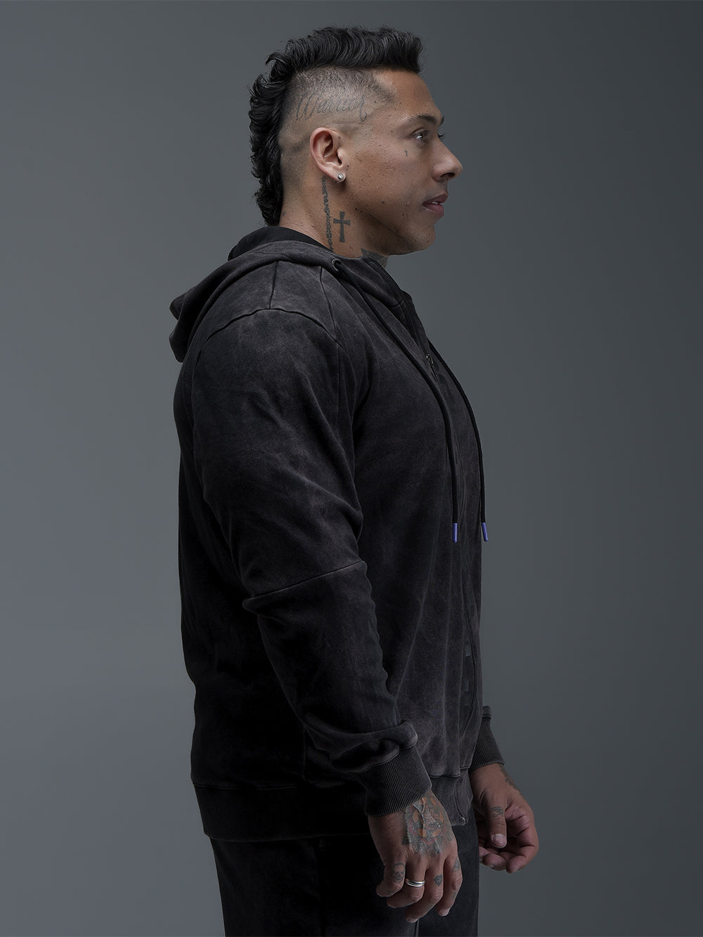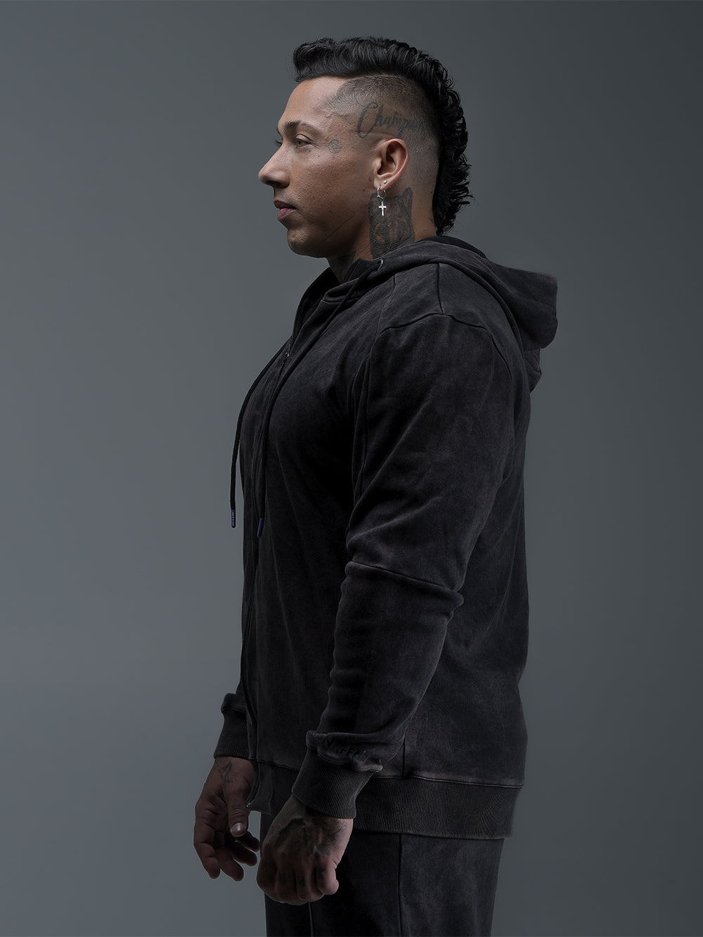 Esta chaqueta deportiva presenta un proceso de lavado en su tela y logo ROOTT+CO, combina estilo y funcionalidad con un diseño central en morado y negro. Confeccionada en una mezcla de 20% algodón y 80% poliéster, ofrece confort y resistencia. Sus puños elásticos garantizan un ajuste seguro, mientras que la capota protege contra el viento y la lluvia, ideal para mantener el rendimiento durante cualquier actividad física.