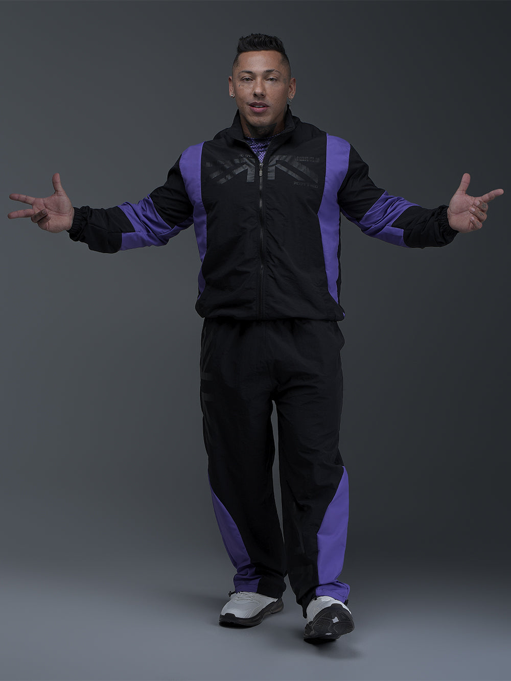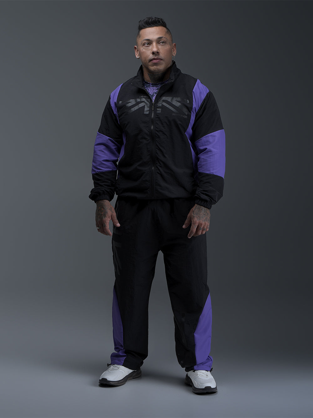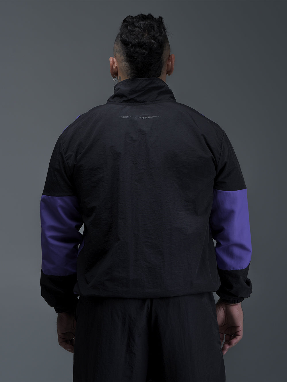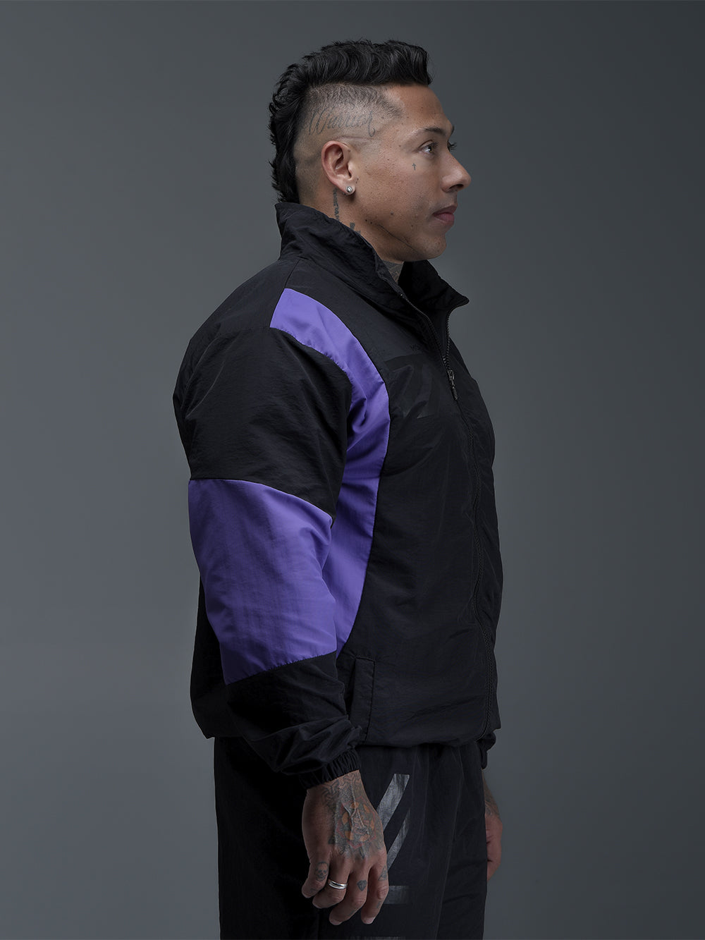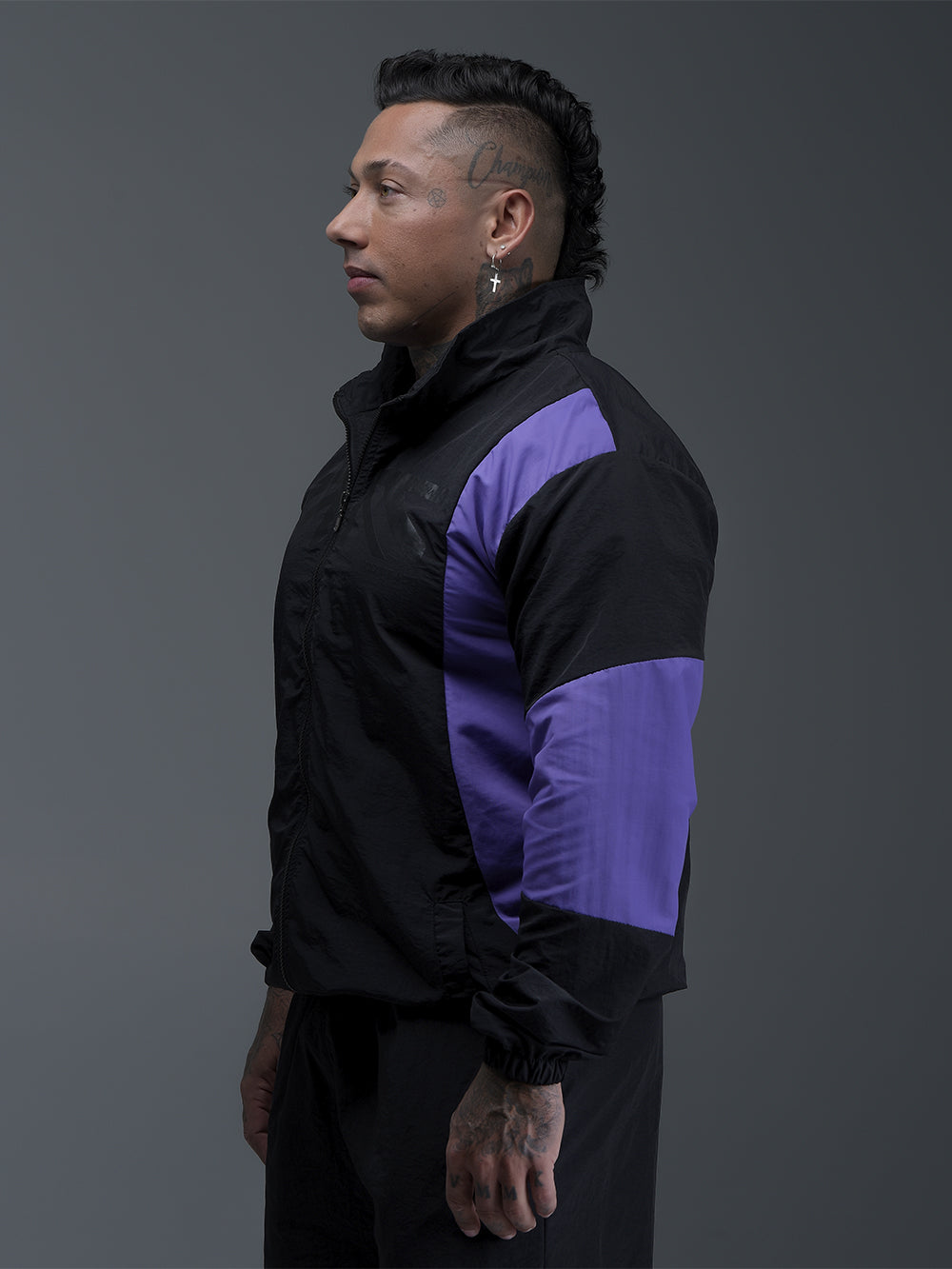 Esta chaqueta deportiva presenta un proceso de lavado en su tela y logo ROOTT+CO, combina estilo y funcionalidad con un diseño lateral en las mangas en morado y negro. Confeccionada en una mezcla de 88% poliéster y 12% elastano, ofrece confort y resistencia. Sus puños elásticos garantizan un ajuste seguro, su cuello alto remata el diseño de la prenda, ideal para mantener el rendimiento durante cualquier actividad física.